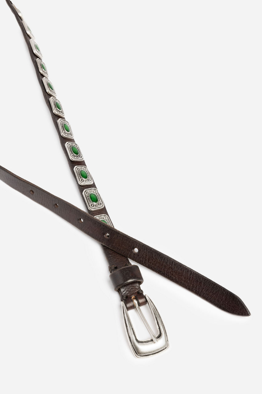 Crafted from supple black leather, the Finestra Belt adds a fashion-forward twist to daily practicality. Made in Italy, this belt features a secure buckle fastening and stone embellishments across the front for a bohemian twist. Pair this belt with everything from smart workwear to casual weekend ensembles.