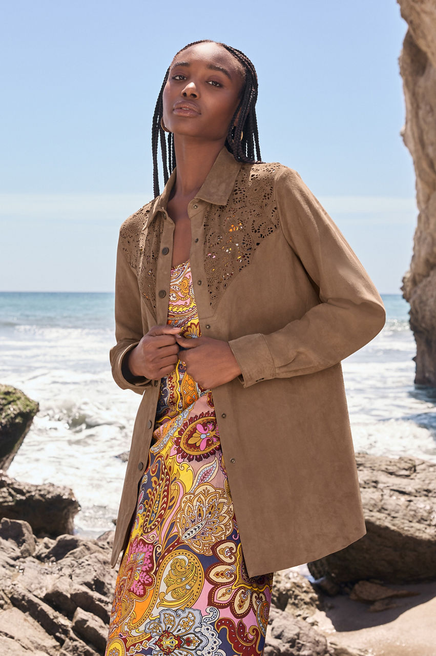 Presenting a modern take on a classic western favorite, the Fiore Suede Western Jacket is a unique addition to your wardrobe. Carefully crafted from 100% suede and adorned with a traditional yoke front, this button-closure jacket evokes sophistication and charm. Pair with your favorite jeans and a classic button-down blouse for an updated look.