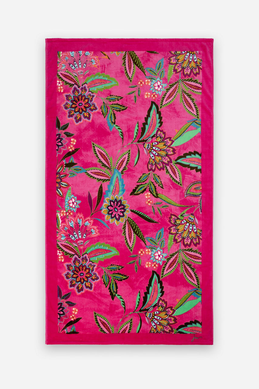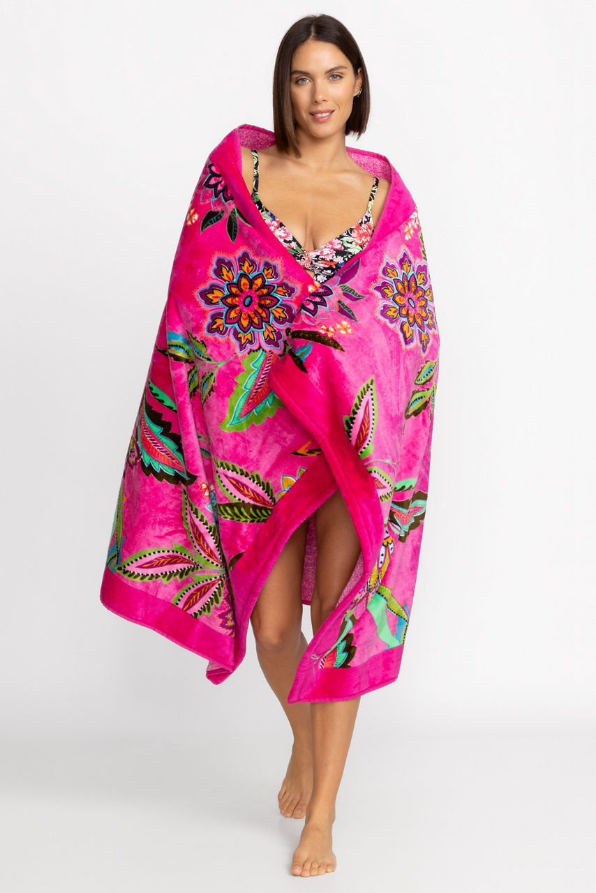 Rich with vibrant color and pattern, the Flamingo Beach Towel is the perfect poolside accessory. Crafted from 100% cotton, this easy-care towel adds a splash of style to your swim ensemble and is beautiful and functional. Carry in your summer tote when you head out to soak up the sun.