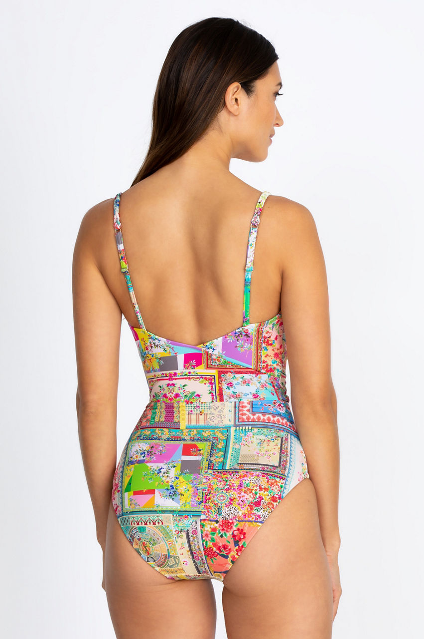 Make waves this swim season with the Fleur Braided Wrap One Piece. A new take on a classic cut, this gorgeous artisan-inspired suit features bright floral details and an ultra-flattering fit perfect for when you re lounging poolside or spending the day at the beach. Pair with a sheer kimono or a sarong for a chic boho look.