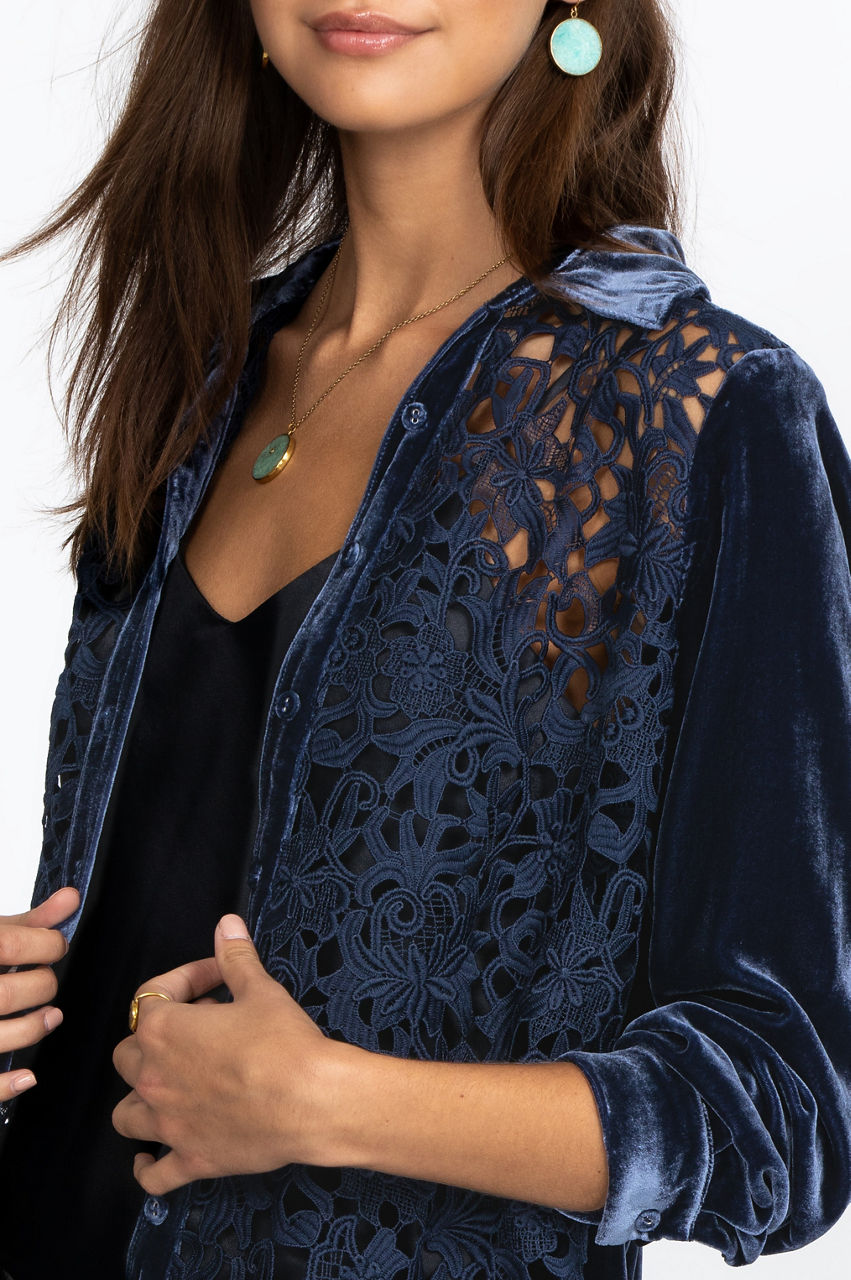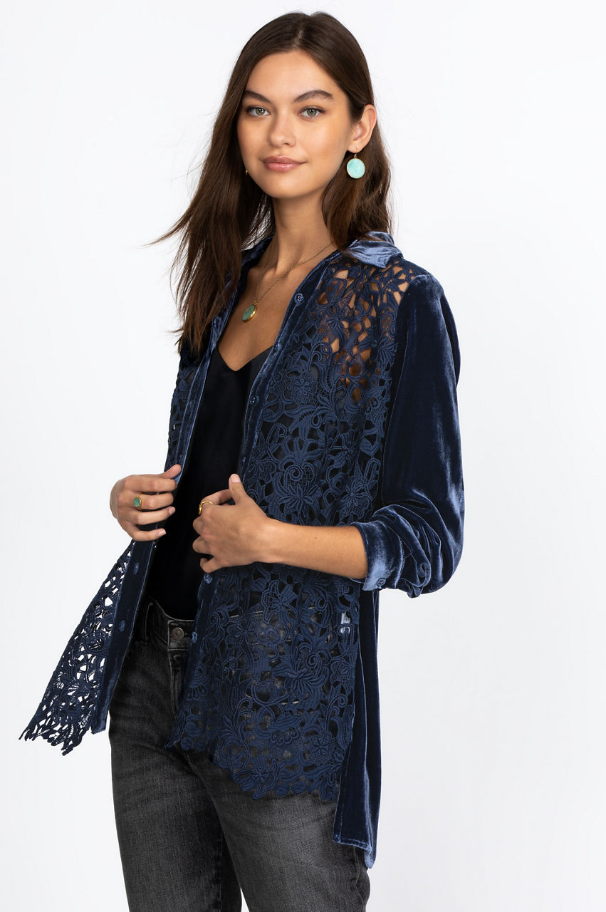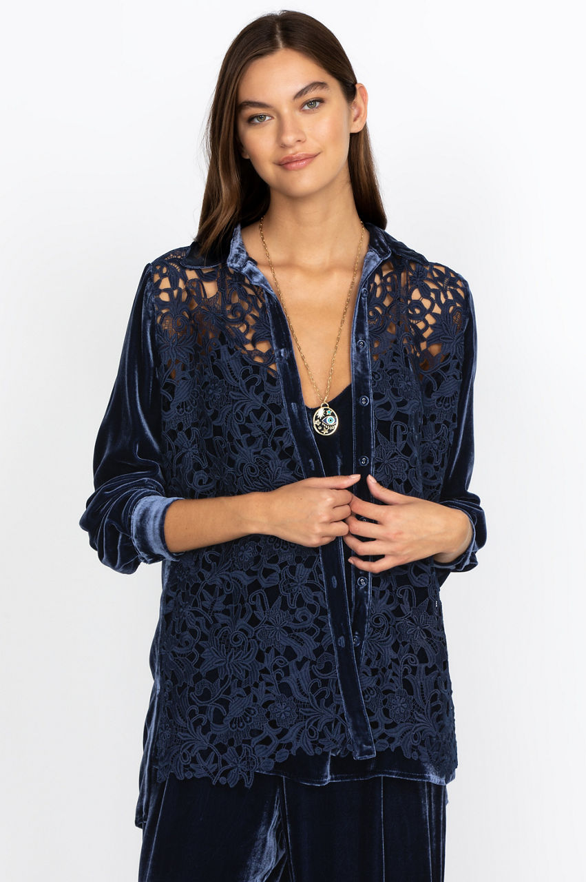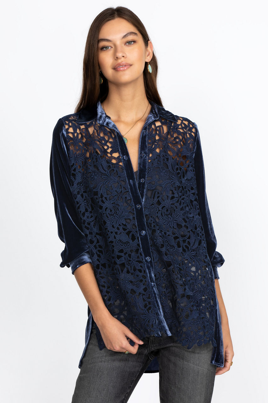 The Flicka Button Down Shirt is an elegant piece with its classic collar and front button closure. The sleeves, collar, and front placket create a stylish contrast with the abstract print to add structure and visual interest to your outfits. Style this button-down shirt with some black slacks for a timeless look.