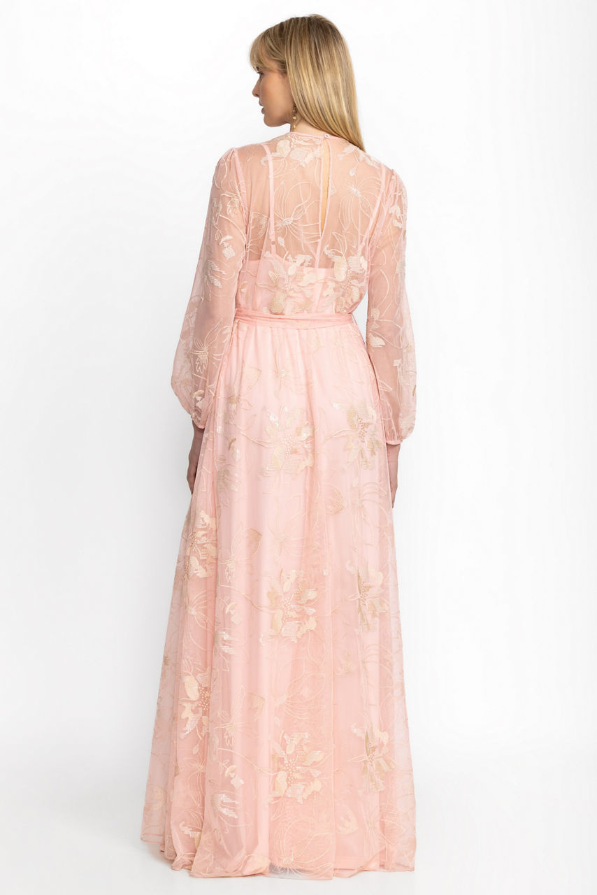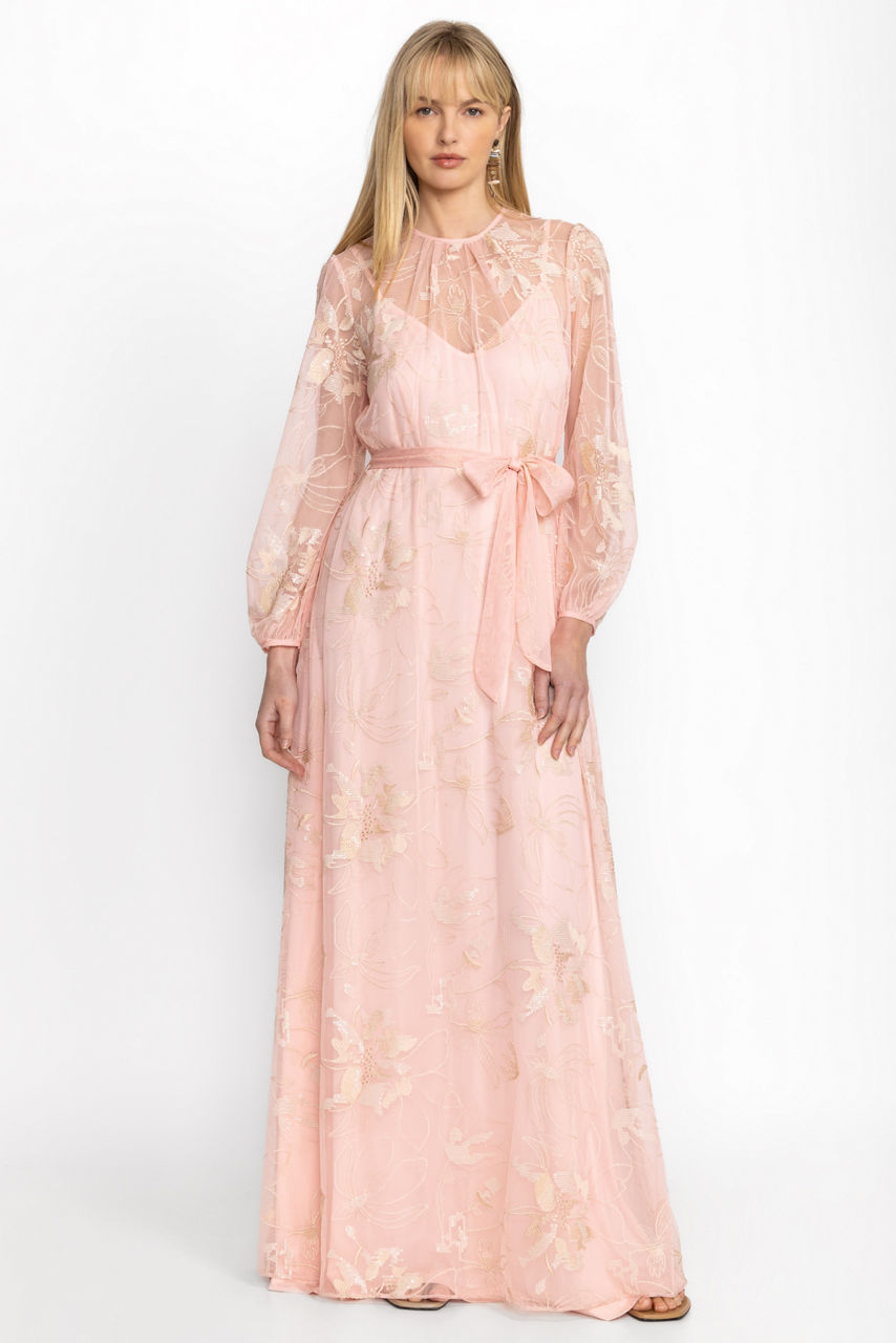 Offering feminine elegance with a vintage flair, the Floral Dream Dress is crafted from a lightweight breezy material. Featuring a sheer overlay with delicate tonal embroidery, this layered ensemble offers a removable slip with a sweetheart neckline and delicate spaghetti straps. Pair with metallic heels and dainty jewelry for a demure evening look.