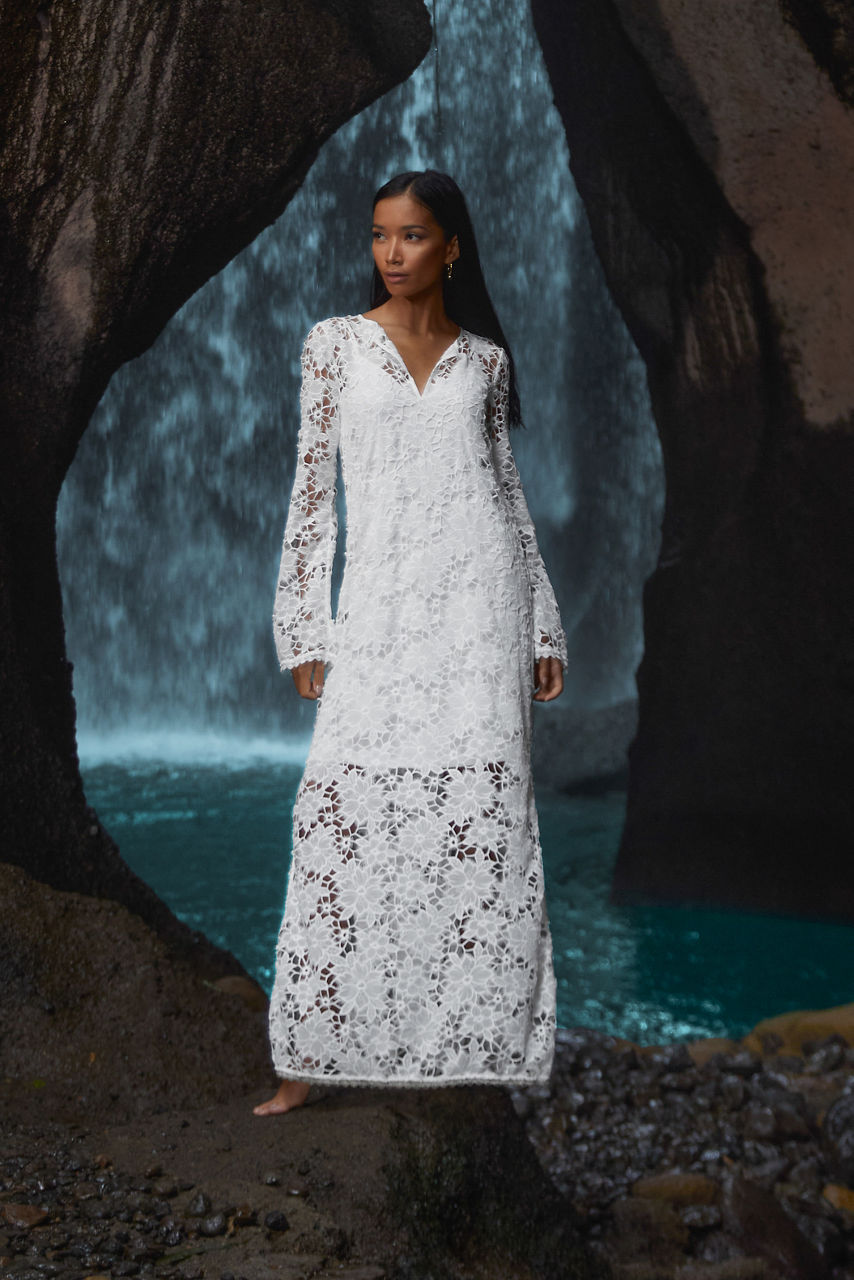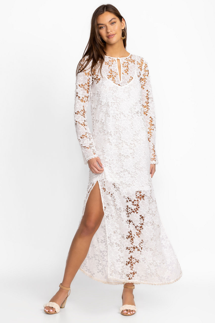 Adorned in delicate detail, the Floral Garden Lace Maxi Dress embraces a sophisticated approach to color and print. Featuring a rounded keyhole neckline and a relaxed A-line cut, this maxi dress is a feminine go-to for the sunny season. Pair with sandals and a silk scarf for an effortlessly chic look.
