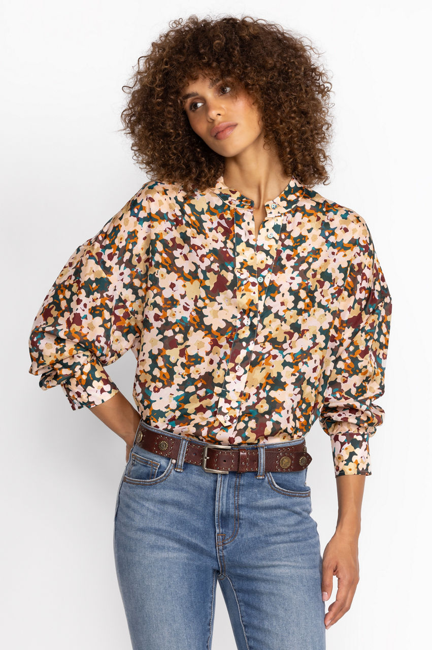 Dreamed up in 90s-inspired florals, the Floral Half Placket Button Top turns a simple style into a new-season statement. This top is crafted from liquid-like silk and boasts a round neck, long sleeves, a half placket closure, a curved hem, and a dainty floral pattern. Style this top with white denim on brighter days and opt for darker jeans during the cooler months.