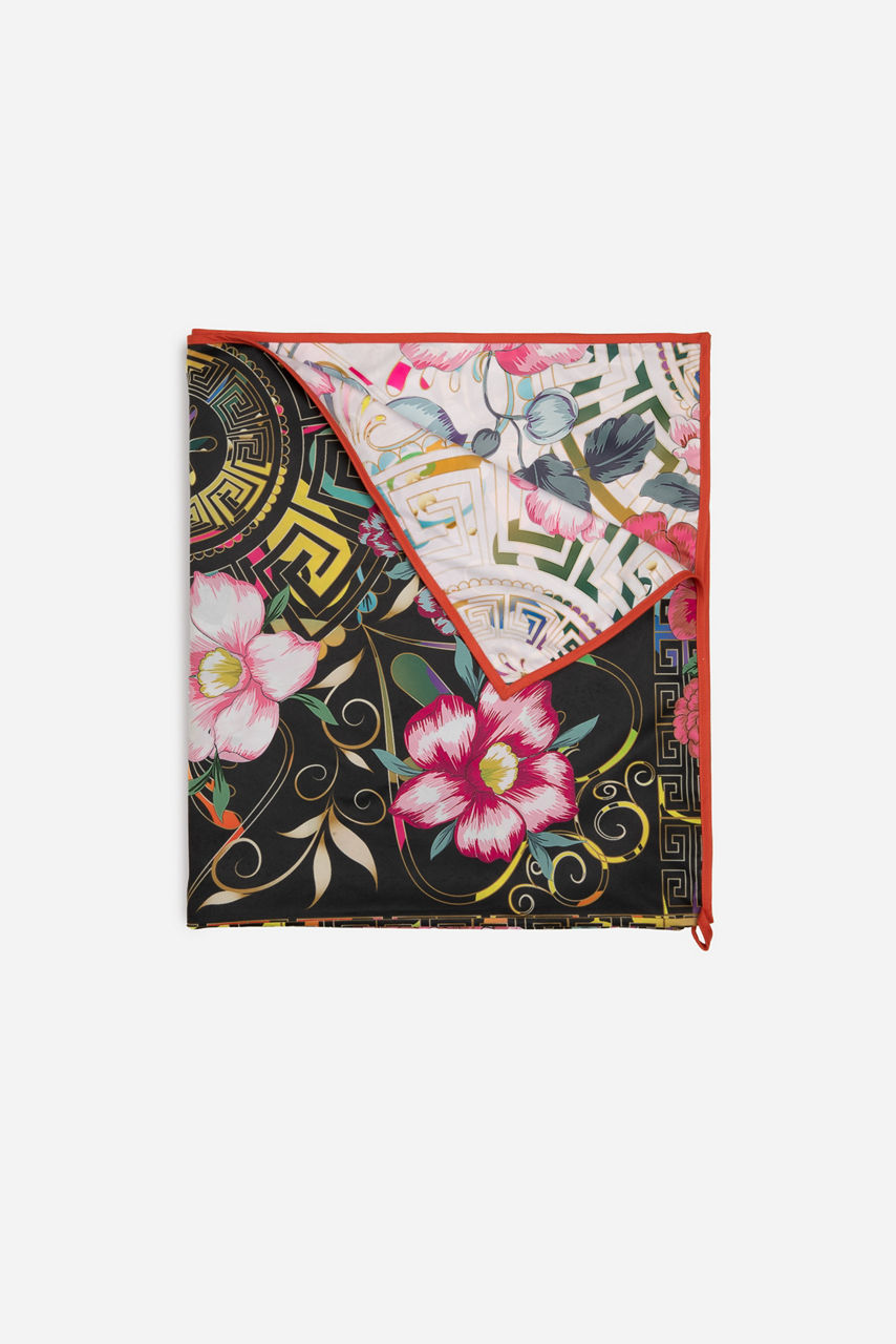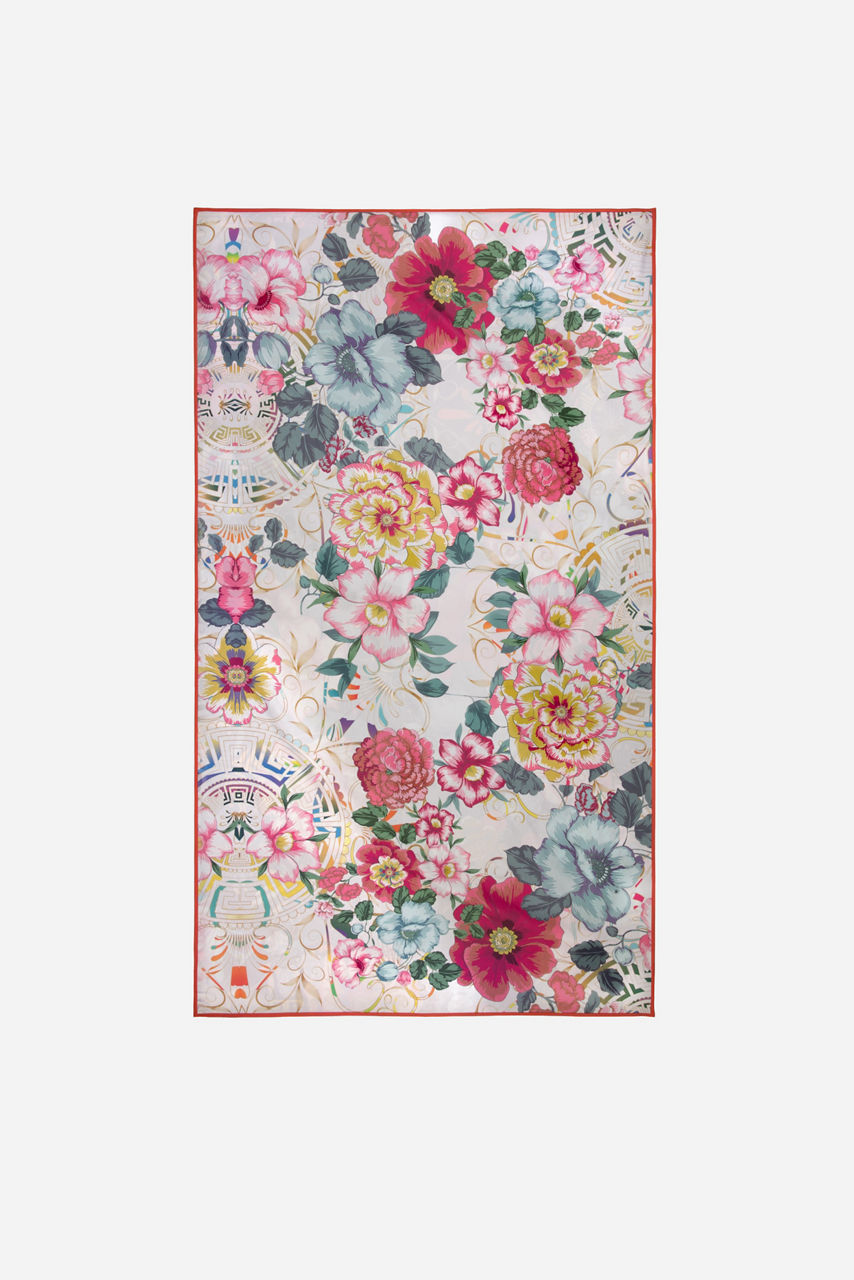 Juxtaposing prints and colors take center stage on the eye-catching Floral Peace Beach Towel. Perfect for lounging under the sun and exotic getaways, this towel fuses an ultra-soft, quick-drying fabric with a mix of colorful tropical florals and bold motifs. Complete with a drawstring bag and an inverted, matching design on the reverse side, this towel promises warmth and comfort on your next pool day.