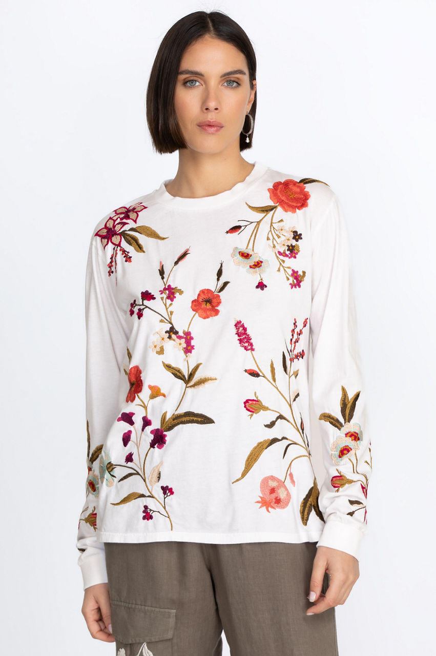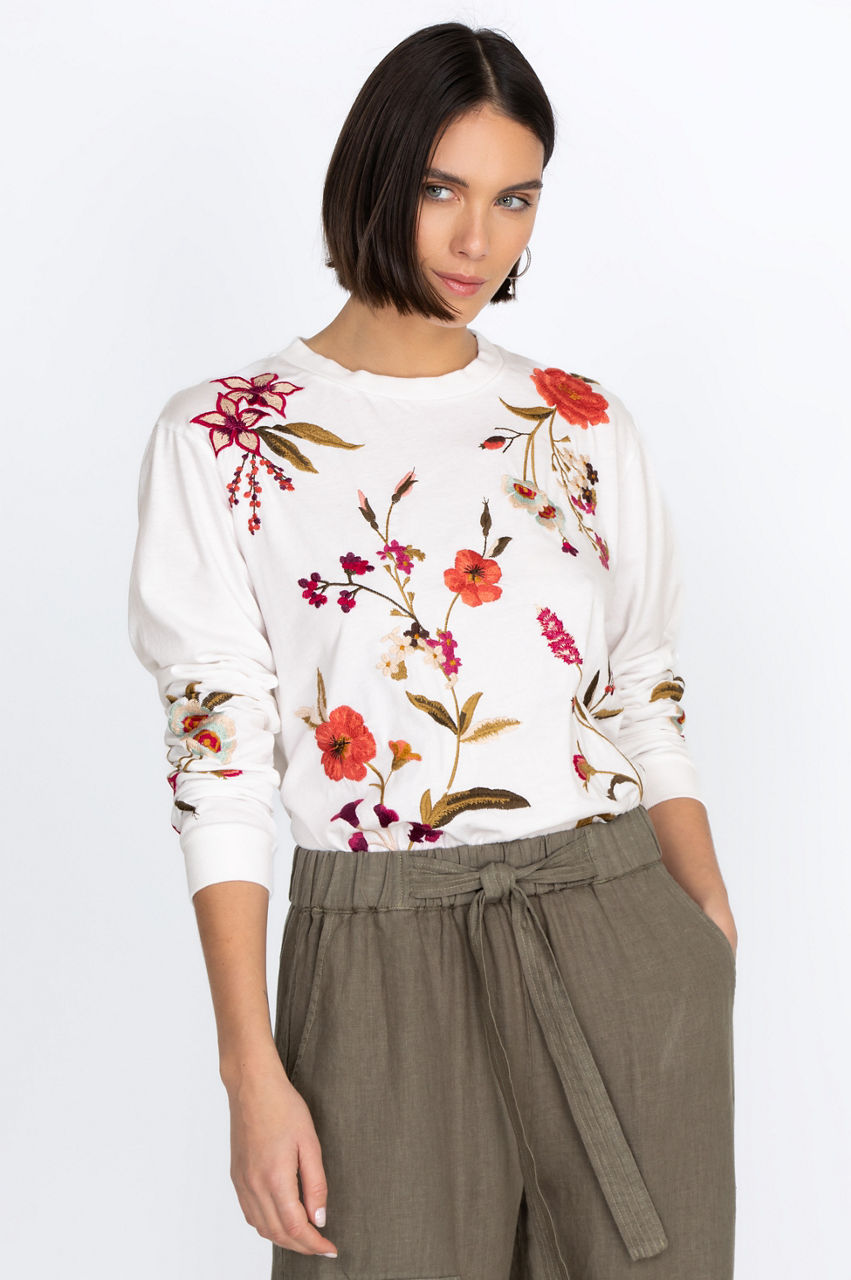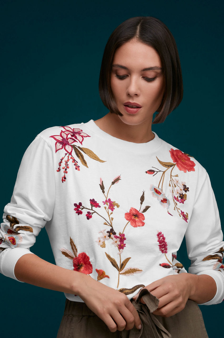 Dainty florals take center stage on the stylish and versatile Flore Long Sleeve Tee. A fashion-forward take on a wardrobe staple, this tee is cut in a regular fit and characterized by a floral embroidery in a complementary color scheme. Finished with a crew neck and ribbed cuffs, this tee can be styled with everything from jeans and pants to shorts and skirts.