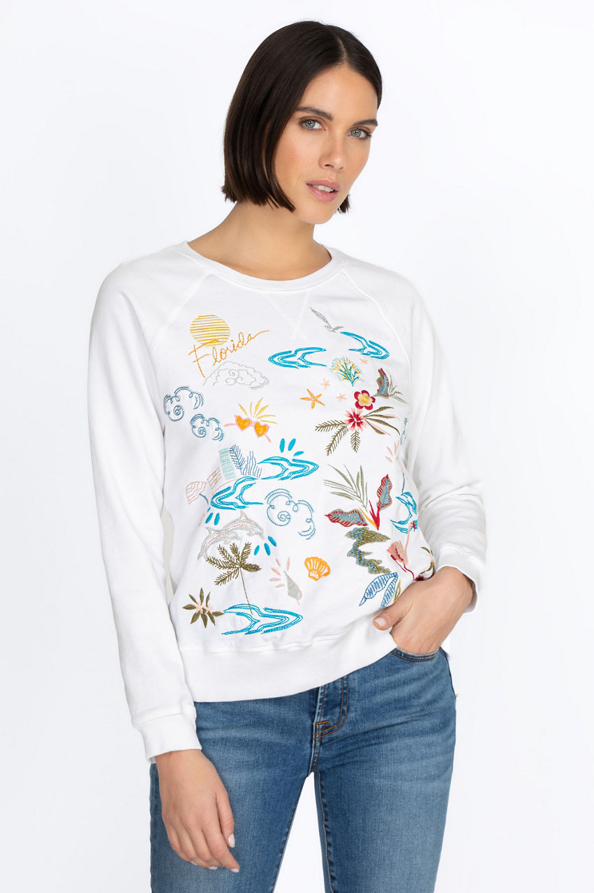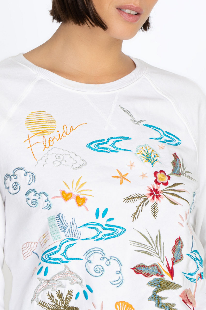 Infused with a retro feel, the Florida Raglan Sweatshirt combines a timeless everyday silhouette with a medley of vibrant motifs. This cotton sweatshirt is cut in a regular fit and features a crew neck, long raglan sleeves, and a multicolored placement embroidery depicting flora and fauna typically found in the Sunshine State. Style with drawstring joggers for a relaxed yet lively ensemble that can be worn for both travel and relaxation.