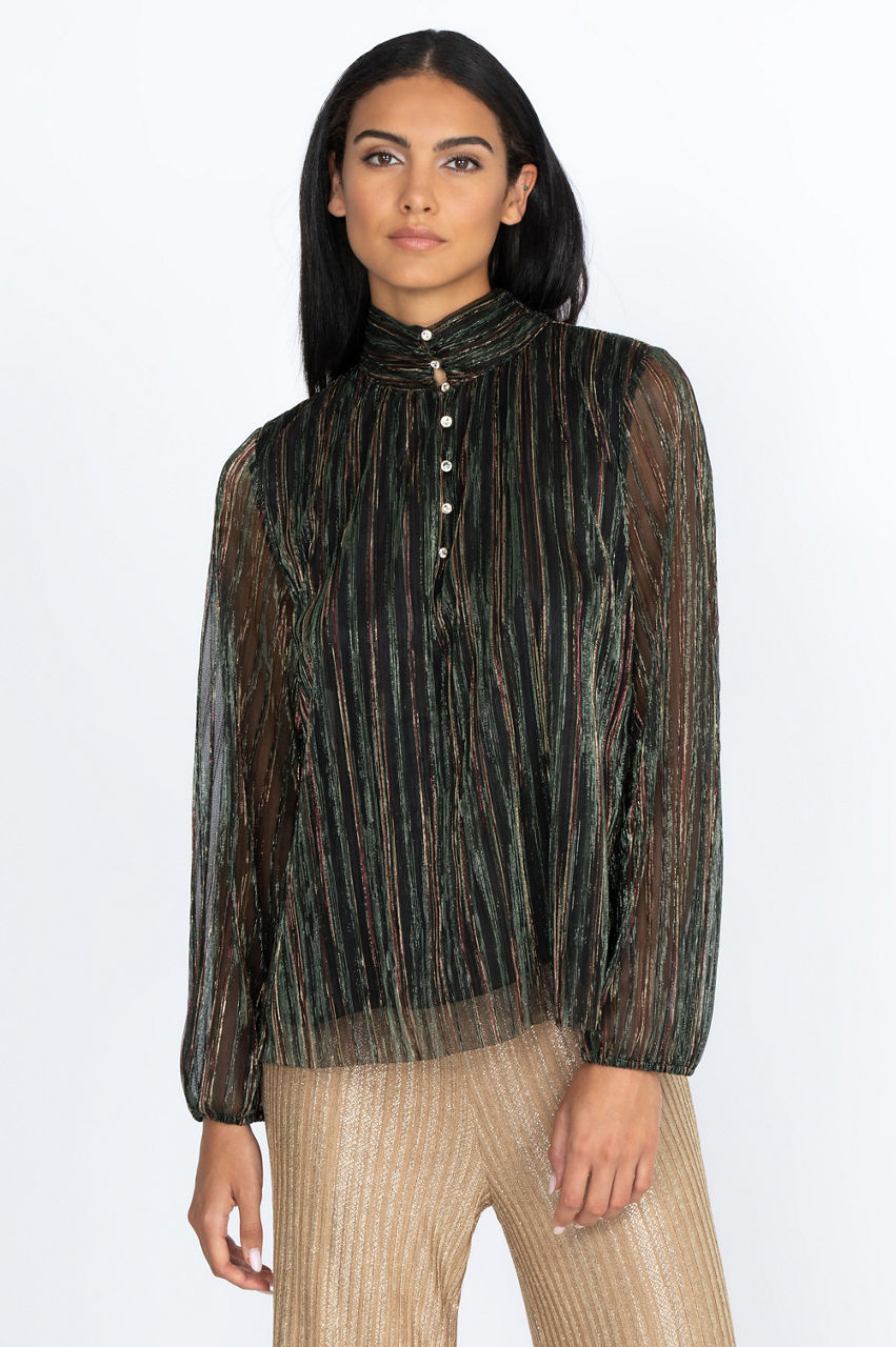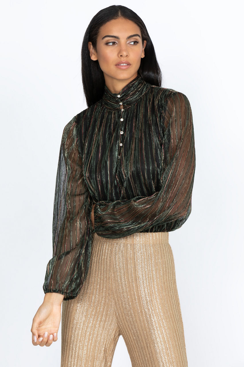 With its chic, timeless design and muted colors, the Forever Young Blouse will easily become a staple in your closet. This blouse applies a classy look to any outfit with beautiful details like the buttons on the top half and the elastic sleeve cuffs. Pair it with dark jeans or leggings for a sophisticated look.