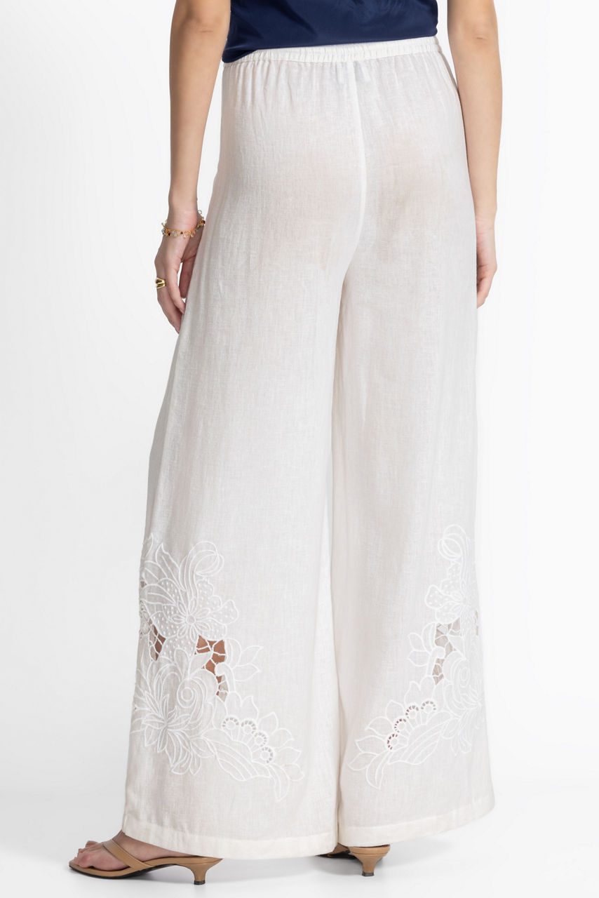 Crafted from a lightweight breathable blend, the Frankie Easy Pants move as you move. Designed with an elastic waistband with a drawstring for a customizable fit, these shorts-lined pants are finished with intricate tone-on-tone embroidered details at the hemline. Pair with a silk cami and kitten heels for a resort-inspired look.
