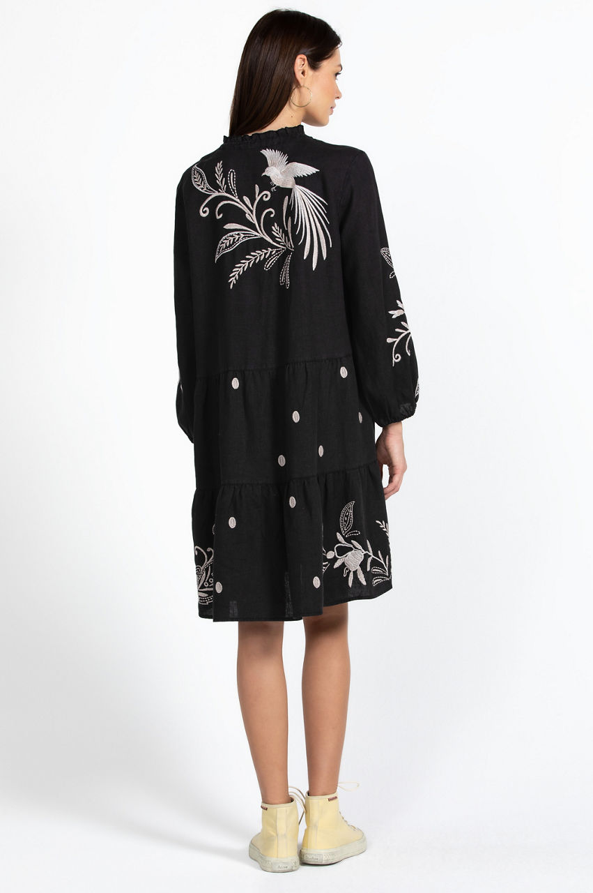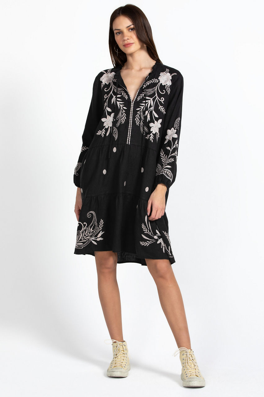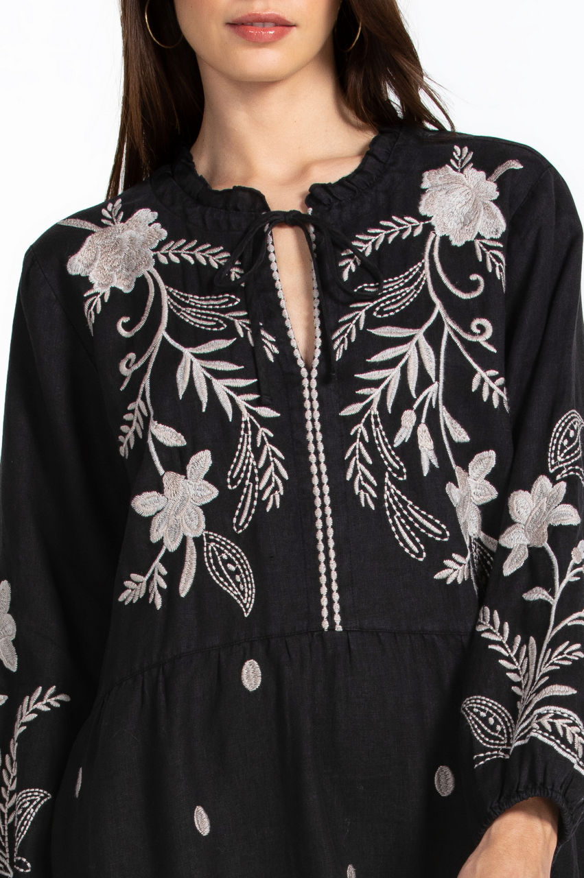 A classic bohemian style, the Frankie Tiered Field Dress lends an ethereal touch to your vacation wardrobe. Cut in a relaxed fit, this tiered dress is enhanced by a romantic floral placement embroidery and is crafted from pure linen - a practical and breathable choice for warmer weather. Finished with a tie neck and tiered hem, this dress is a chic option for sun-soaked locations and poolside lounging.