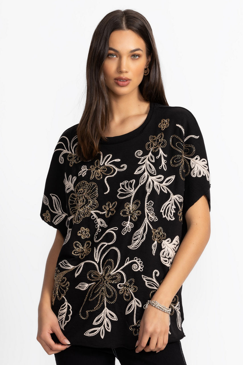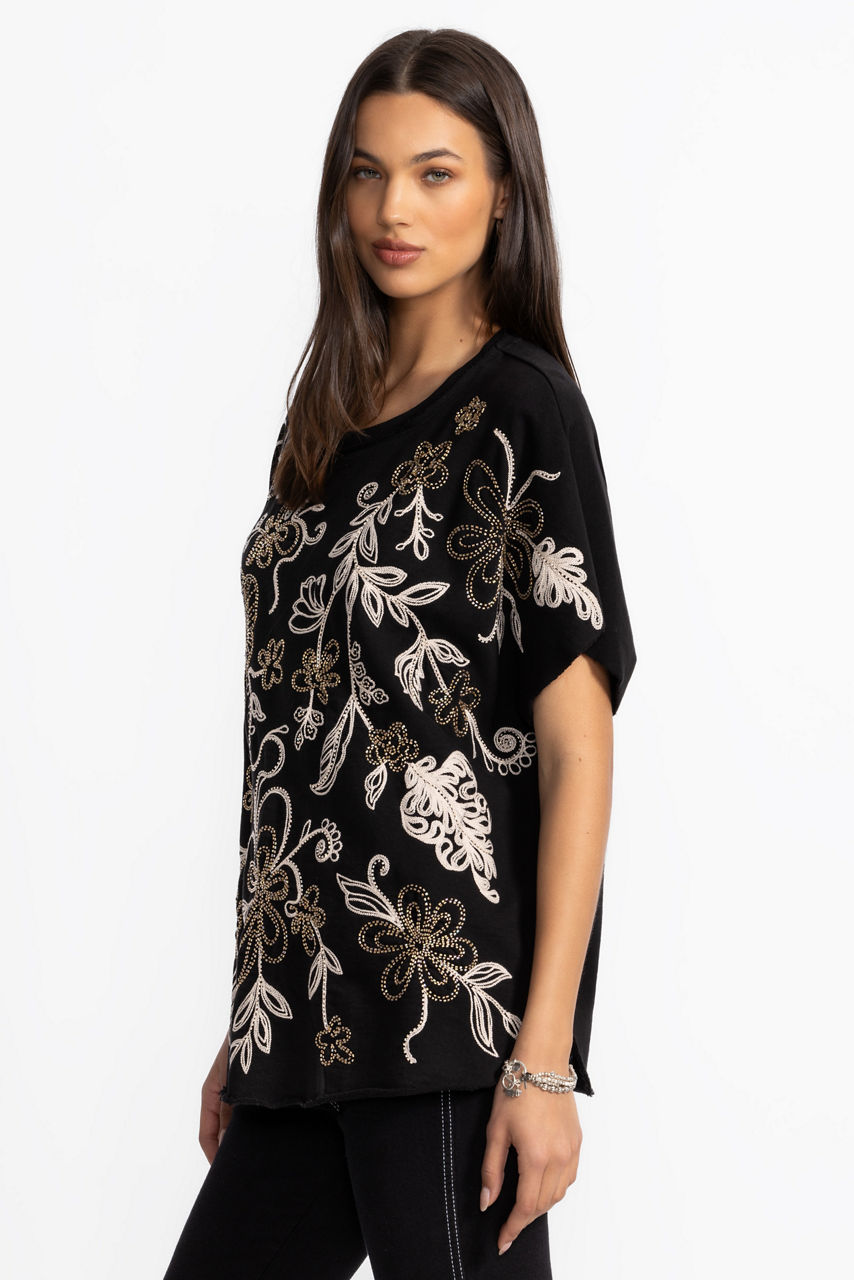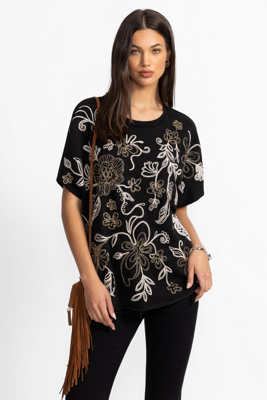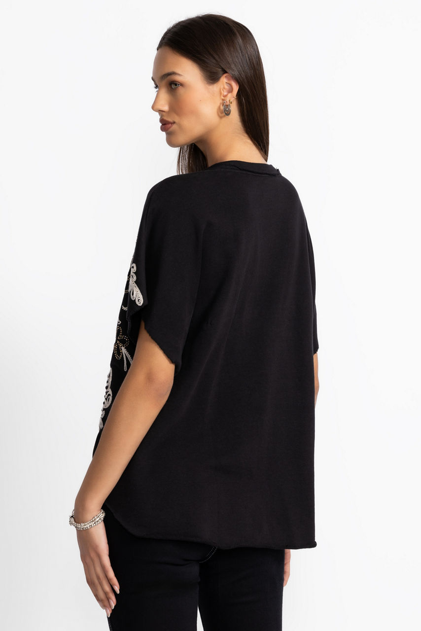 Crafted from 100% breathable cotton, the French Terry Poncho is embellished with intricate placement embroidery. Featuring a crew neckline and elbow-length Dolman sleeves, this unique top is finished with a curved hemline and a relaxed fit. Layer over a cotton tank and pair with khaki shorts for a resort-ready look.