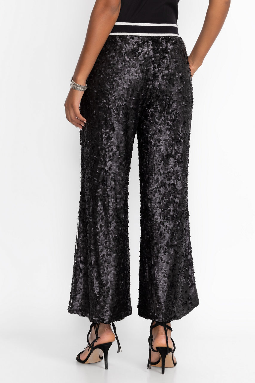Offering a fresh take on evening wear, the Gabie Sequin Pant adds texture and shine to your look. Featuring a wide elastic waistband with a drawstring for a customizable fit, these wide-leg pants are adorned with a bevy of sparkling sequins and are finished with slip pockets at the side seams. Pair with the Etta Silk Cami and strappy heels for a polished evening look.