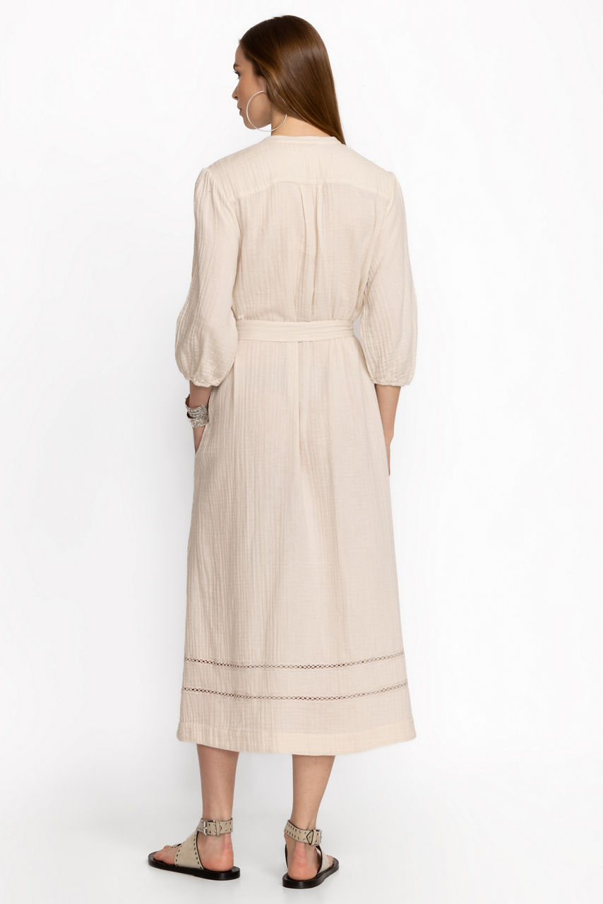 GAUZE BISHOP SLEEVE DRESS WITH WAIST TIE
