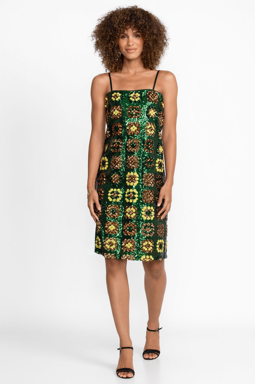Providing a captivating dose of shimmer for your night out, the Gemini Sequin Mini Dress redefines the concept of sophisticated evening attire. This opulent mini dress boasts a stunning display of intricate patterns and radiant sparkle, accentuated by a dazzling straight neckline and delicate spaghetti straps. Complement this ensemble with strappy heels and a sequin-adorned clutch to ensure an unforgettable night on the town.