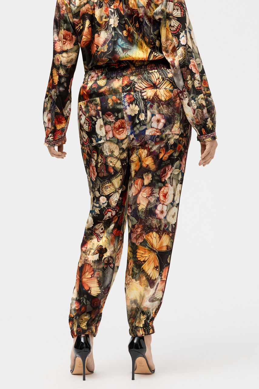 Crafted from a rich silk blend, the Teyros Genora Joggers are embellished with a timeless floral motif. Designed with an elastic waist and cuff, these unique pants are accented with embroidered contrasting and piping at the outseam and are finished with slip pockets at the front and patch pockets at the back. Pair with a black hoodie and fashion sneakers for a cozy weekend look.