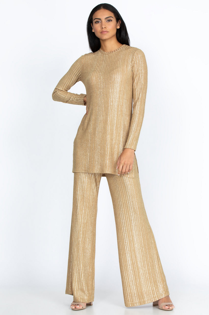 The Glow Easy Pant can easily take you from the office to a night out with its versatile neutral color and solid print. An elastic waist ensures you ll be comfortable all day, regardless of the activities you pursue. Wear these pants with a blouse to the office. You can also pair these pants with a simple tee for a more casual outing.