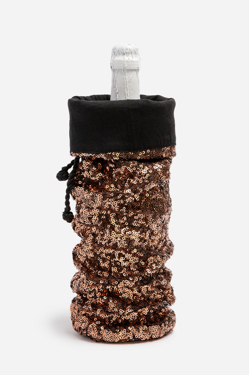 Make a lasting impression this holiday season with the Gold Holiday Sequin Wine Tote. This chic wine tote creates a stylish metallic effect with its sequins while the tassel closure is ideal for storing a bottle of wine. This tote can make a gift feel more meaningful and festive, and it s an elegant accessory the recipient can reuse.