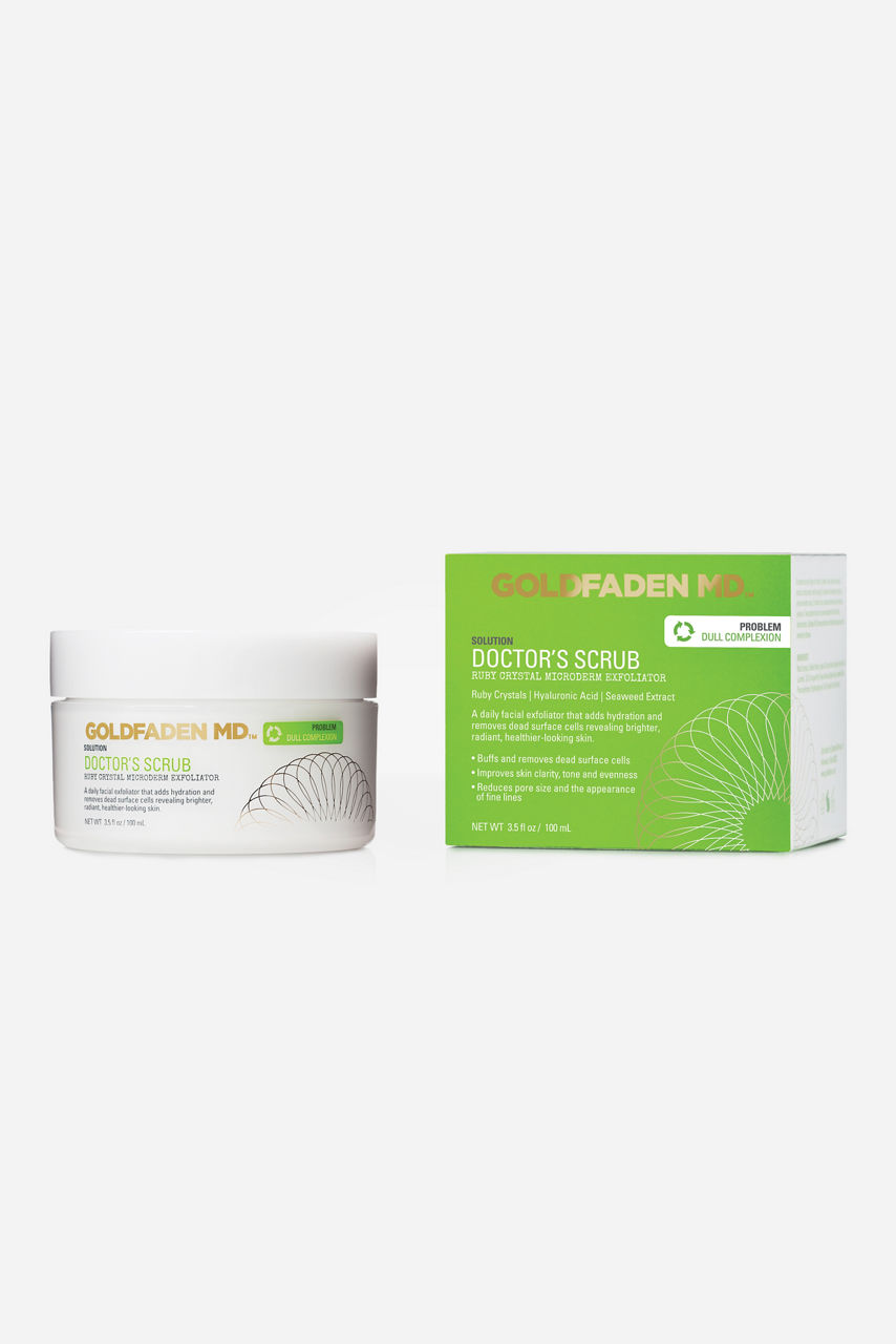 Formulated with line-filling hyaluronic acid to deliver long-lasting hydration as well as nourishing seaweed and organic red tea extract for a potent boost of antioxidants. Daily use of Goldfaden Doctor s Scrub will make skin feel firmer and appear stronger while working towards a more radiant complexion. This daily facial exfoliator is suitable for all skin types.