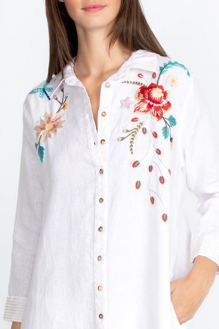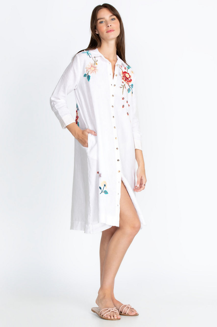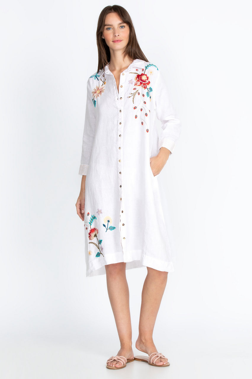 Whether you re hosting an outdoor dinner party with friends or staying in for an elegant date night with your special someone, our Grace Button-Down House Dress is the perfect piece for a romantic atmosphere. Its impeccable embroidery, lovely silhouette and trendy design make this dress a favorite. Pair it with some ankle boots and a wide-brimmed hat to craft a boho-chic ensemble.