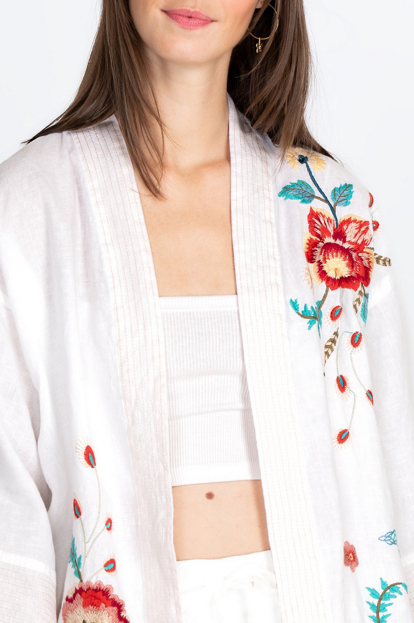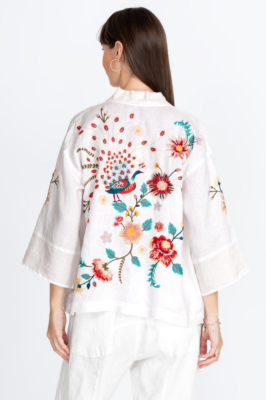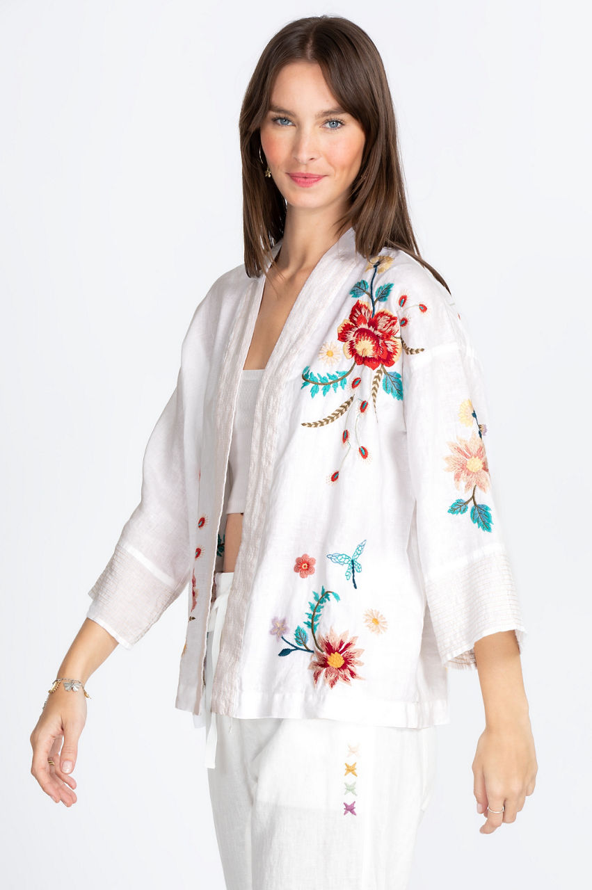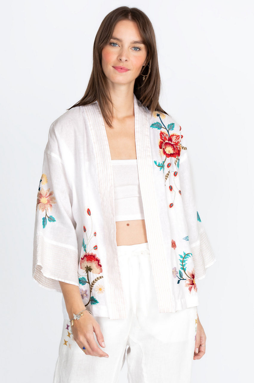 Our Grace Cropped Kimono is as fashionable as it is comfortable. This trendy layering piece features stunning boho detailing, impeccable embroidery and a stylish design to give you everything you want. Pair it with a silk camisole and cropped trousers or your favorite tunic dress. Complete the look with strappy flats and elegant jewelry.