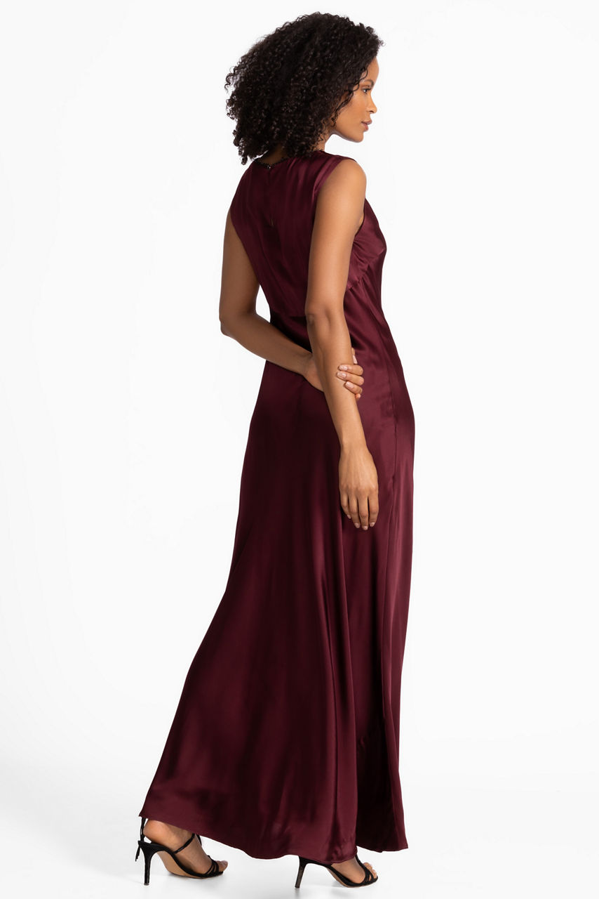 Crafted from sumptuous 100% silk, the Gradina Silk Dress is equal parts elegant and timeless. Designed with an embellished boat neckline and a keyhole at the back, this cap sleeve dress is finished with a flowing bias cut for a draped effect. Pair with classic pumps and delicate gold jewelry for a polished evening ensemble.