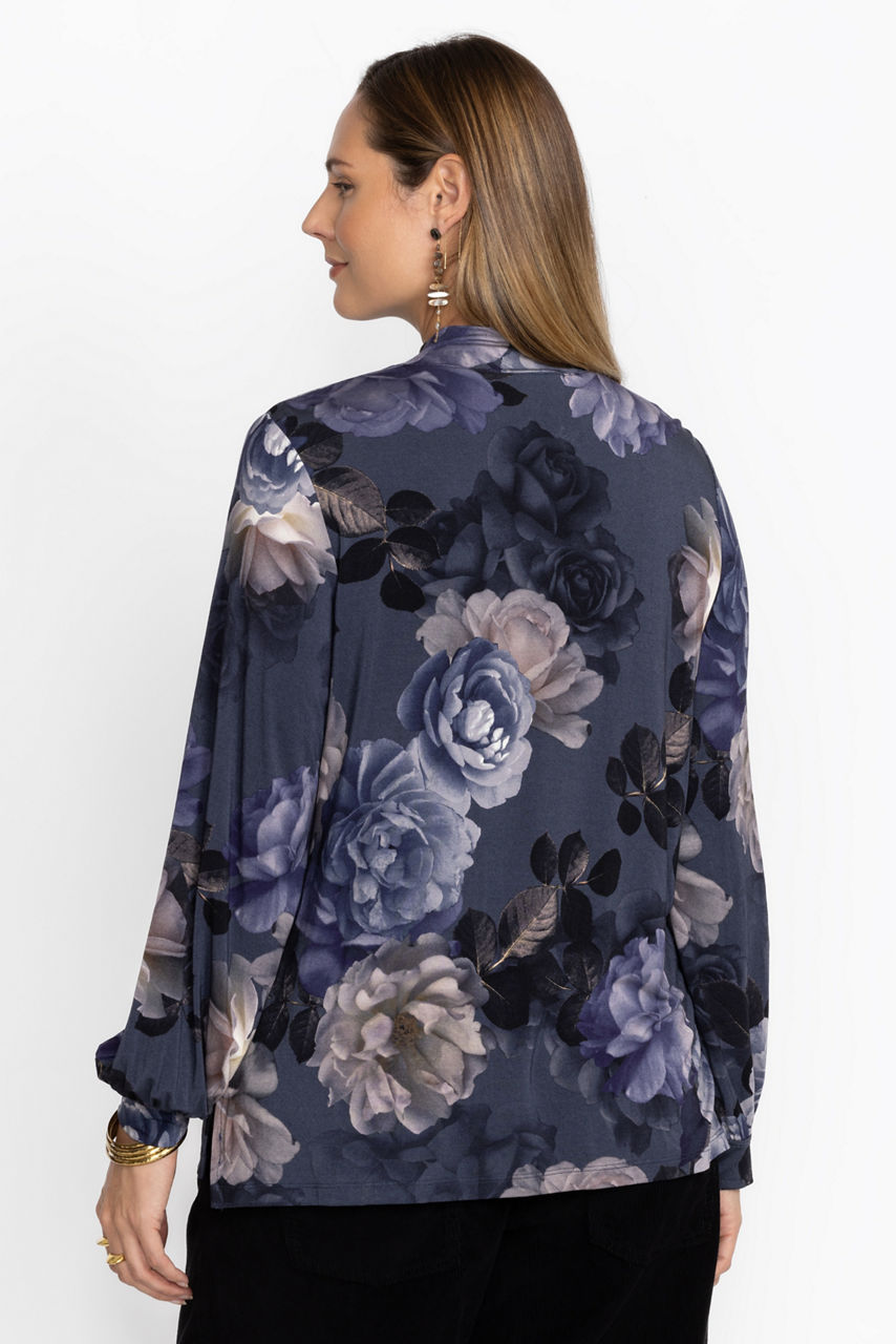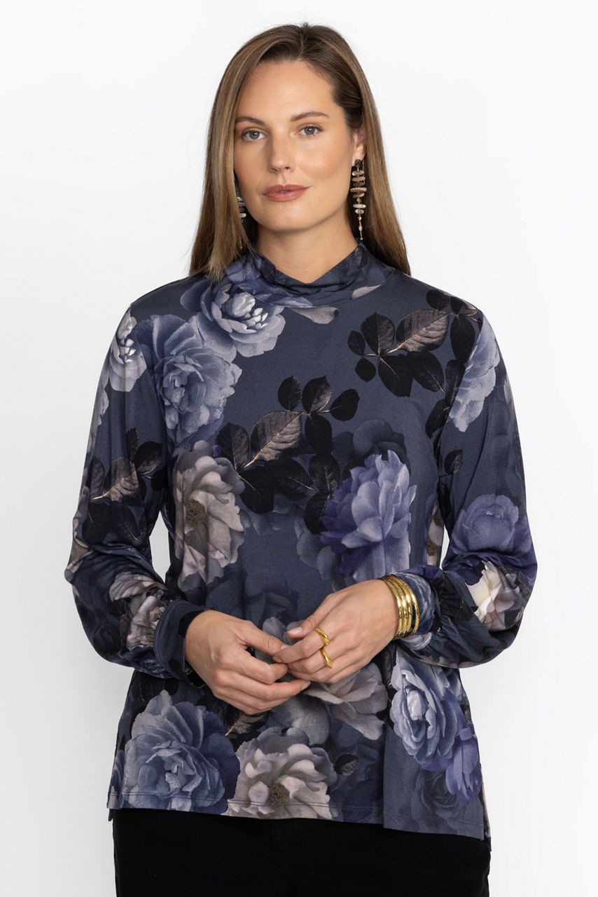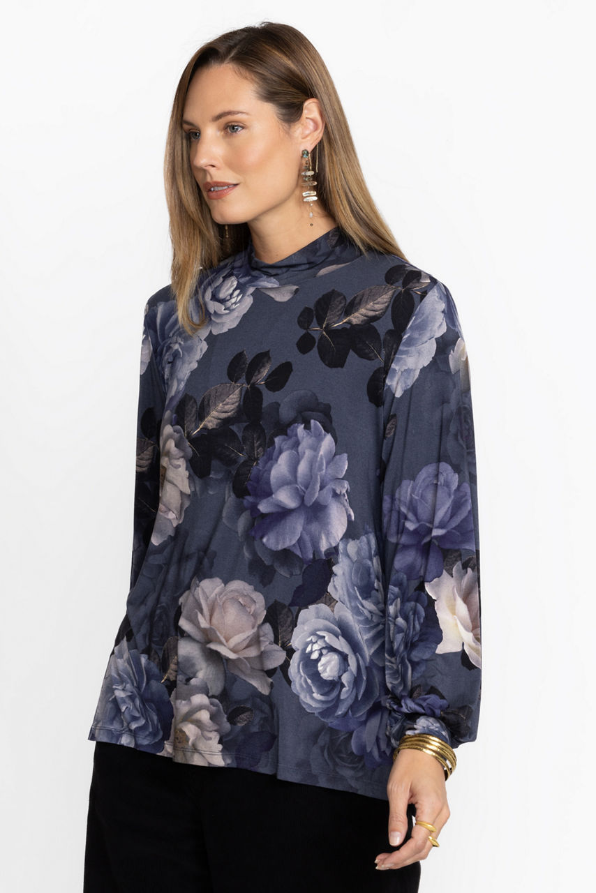 Made from a comfortable fabric with added stretch for comfort, the Grey Peony Puff Sleeve Mock Neck unexpectedly marries a simple design with vivacious blooms. A versatile pick for both daytime and evening dressing, this top boasts a mock neck, a hi-low hem, opened blooms, and puff sleeves for a subtle yet dramatic finish. Keep this top as the focal point of your outfits by pairing with a plain midi skirt or pants.