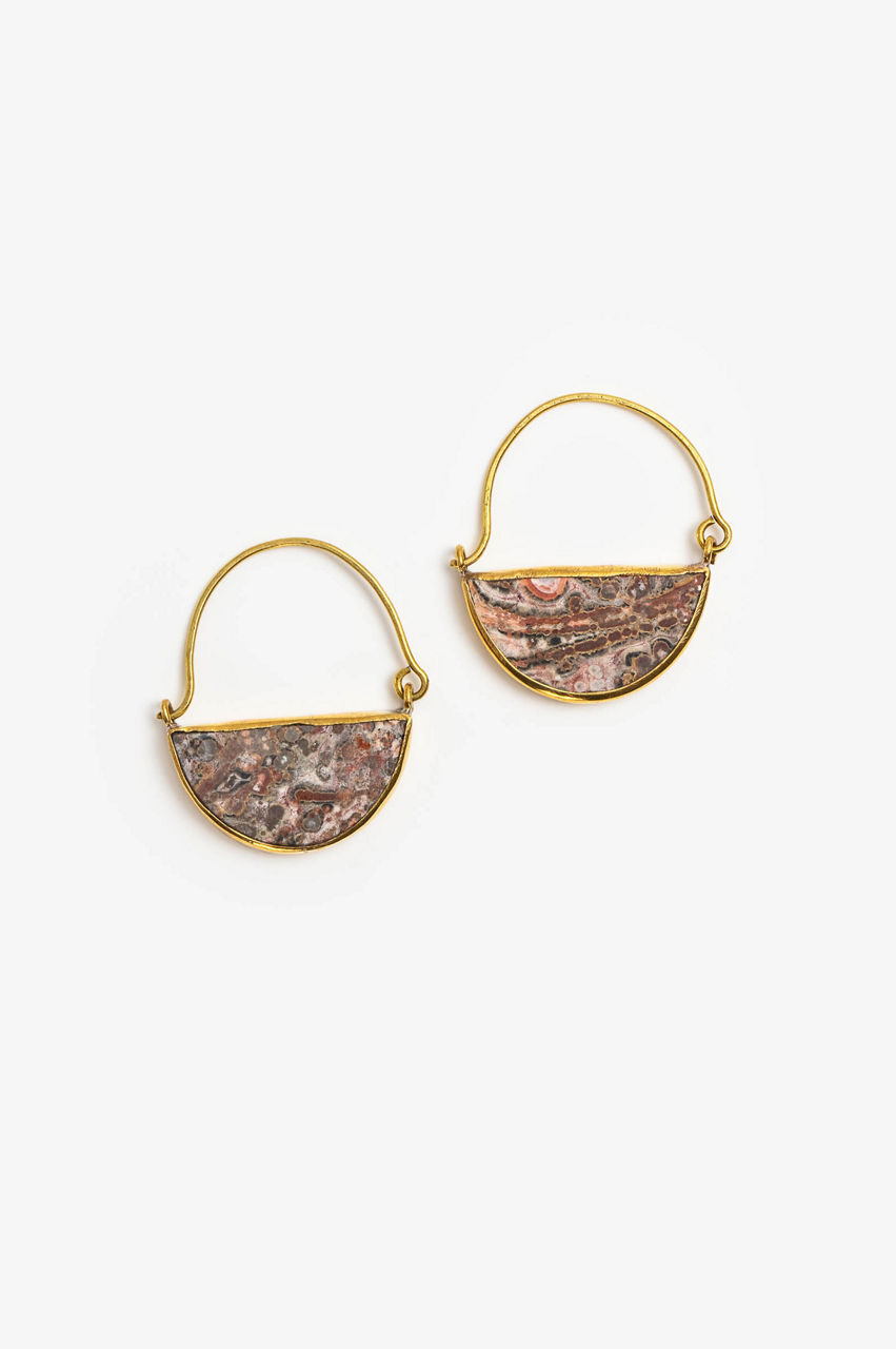 These Half Moon Earrings are stylish accessories that will elevate your look thanks to their smooth mineral surface and the unique pattern of jasper. Combine them with other pieces that use gemstones for a sophisticated effect.