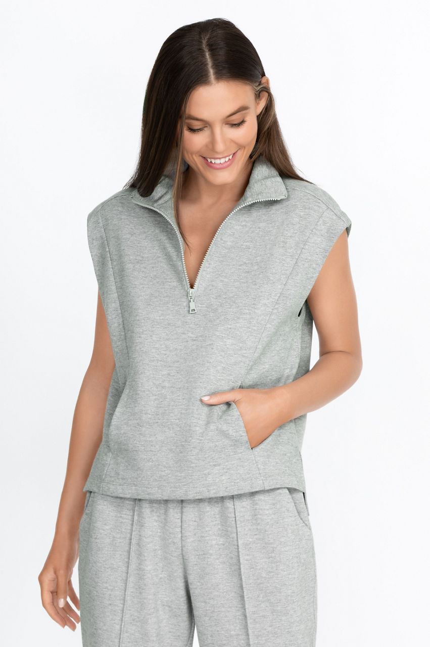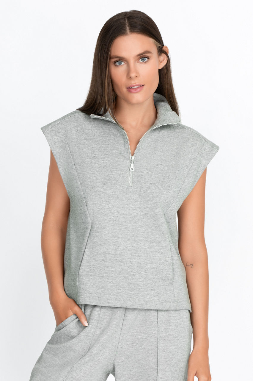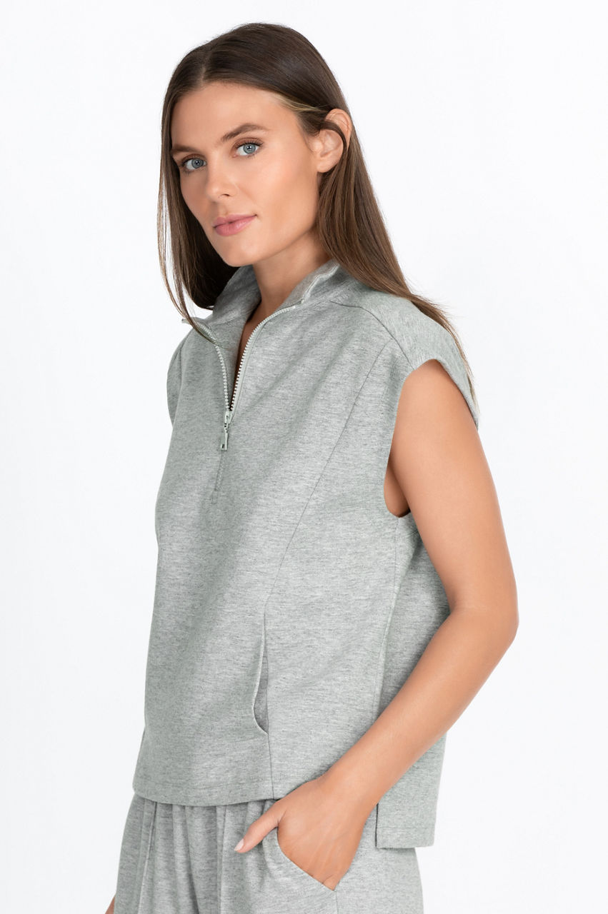 In a soft and comfortable cotton blend, the Half Zip Sleeveless Pullover adds a contemporary twist to a sports-inspired silhouette. This pullover boasts a front kangaroo pocket, a high neck with a zip front, and a sleeveless design that's perfect for warmer days and layering over a tee during the cooler months. Style with tapered joggers and sneakers to take you from the gym to daily errands.