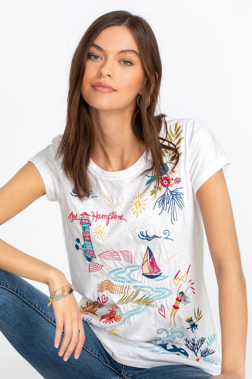 Our Hamptons Cap-Sleeve Tee elevates the traditional T-shirt with its ultra-soft fabric, opulent fit and unique patterns. This top is perfect for days exploring a new park or meeting a new friend for lunch. Pair it with linen shorts, white sneakers and your favorite hat. Complete the outfit with an embroidered backpack or purse.