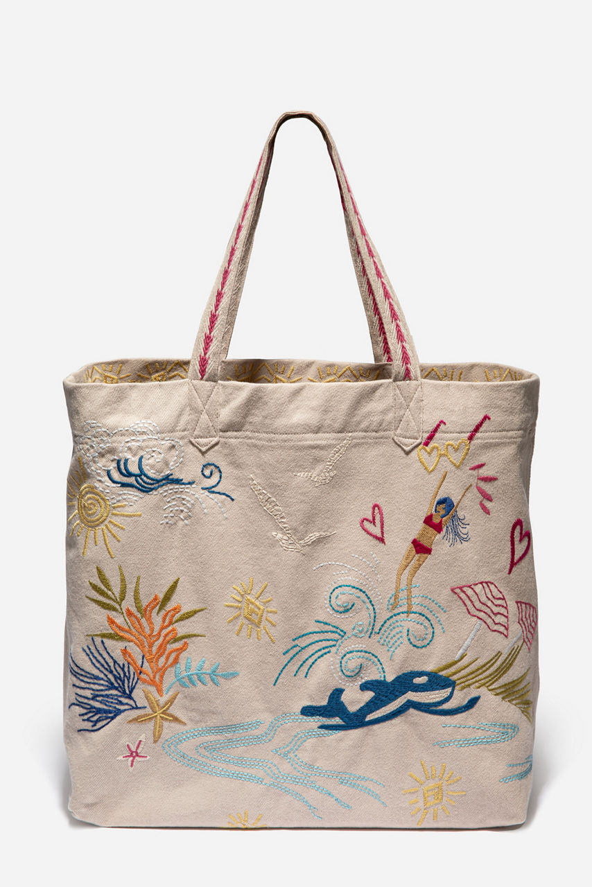 Adopting a nautical theme, the Hamptons Everyday Tote is a stylish statement-making choice for weekend escapes and beachside breaks. This tote bag is made from pure cotton in a vibrant color scheme and boasts an intricate Hamptons-inspired placement embroidery. Finished with two top handles and a printed lining, this tote can be styled with everything from denim to beach dresses and leisurewear.