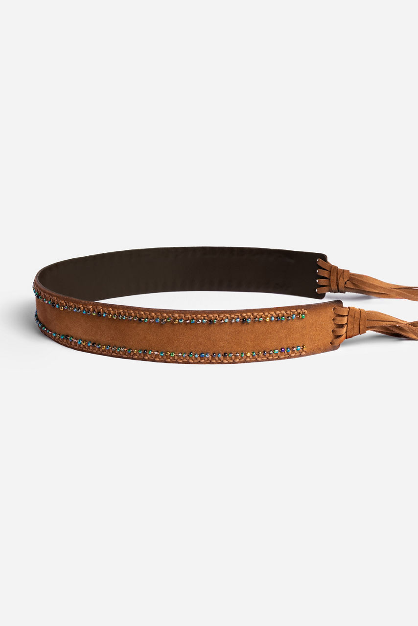 Beautifully crafted from 100% rich sueded, the Hand Beaded Italian Suede Tassel Belt is offered in light brown. Featuring intricate beaded detailing in rows along the length of the belt, this unique accessory is finished with a tassel tie closure at the end. Pair with a denim maxi dress and western-style boots for a fun weekend ensemble.