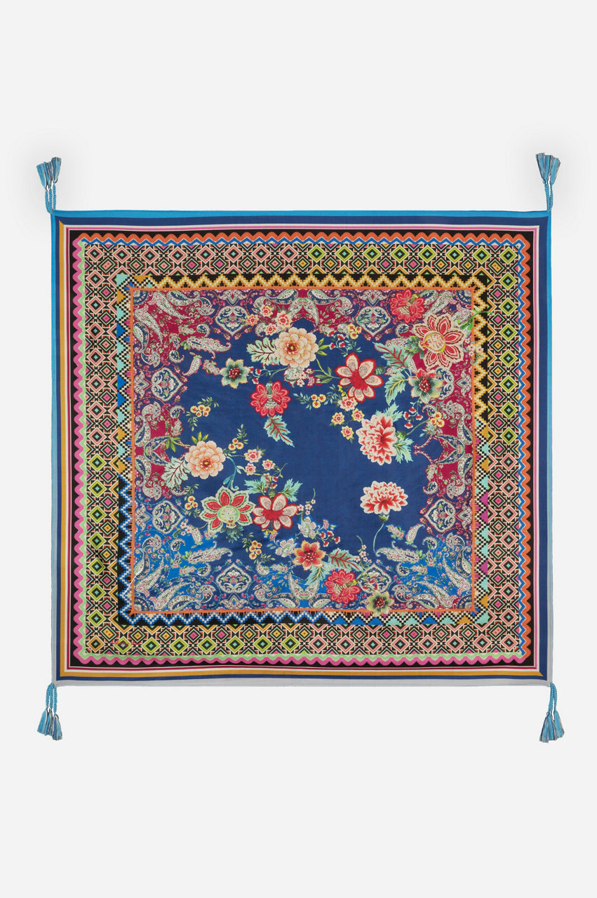 The Hebea Scarf is akin to a work of art thanks to its vintage-inspired florals and detailed patterned border. Crafted in a bold and contrasting color palette, this scarf is spun from smooth silk and finished with tassels at the corners. Opt for a chic finish by wrapping the scarf around your head or consider a classic touch by tying around the neck.