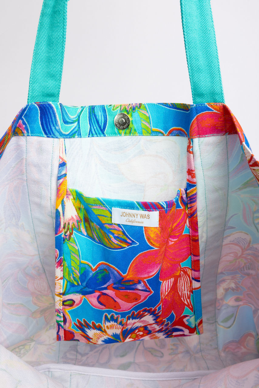 Displaying a beautiful array of color and pattern, the Helena Beach Bag delivers on style and functionality. This bag offers ample space for your personal belongings. Pair with your swimwear to complete the look.
