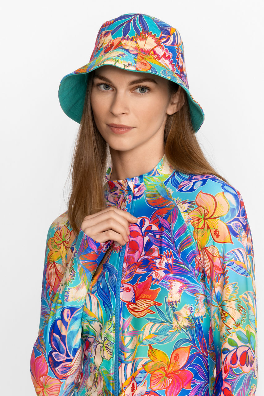 Equal parts vibrant and functional, the Helena Beach Hat adds a splash of color to your resort ensemble. Crafted from a 100% cotton, this fully reversible hat offers protection from the sun and a stunning floral pattern in vivid colors. Add to your beach side ensemble for a little extra flair.