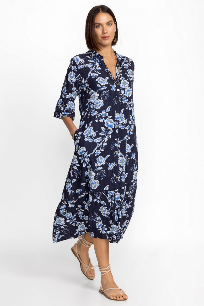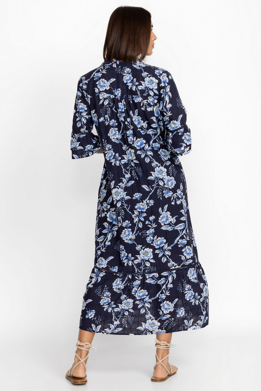 Crafted from a breathable cotton blend, the Magnolia Hi Low Ruffle Sleeve Maxi Dress is lightweight and airy. Featuring a collared button-front, and intricate ruffling at the sleeves and hemline, this vibrant dress is adorned with bold florals. Pair with strappy sandals and delicate jewelry pieces for a polished casual ensemble.