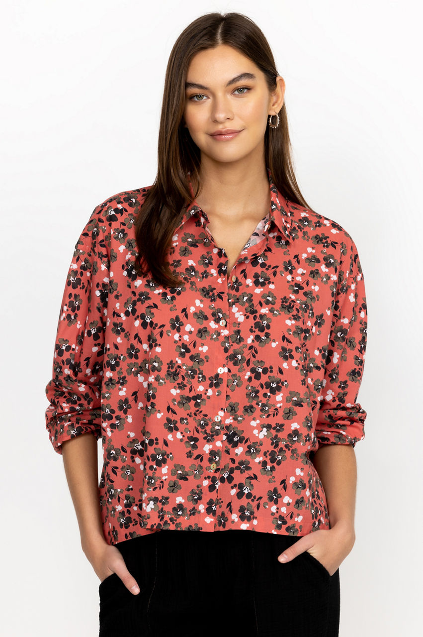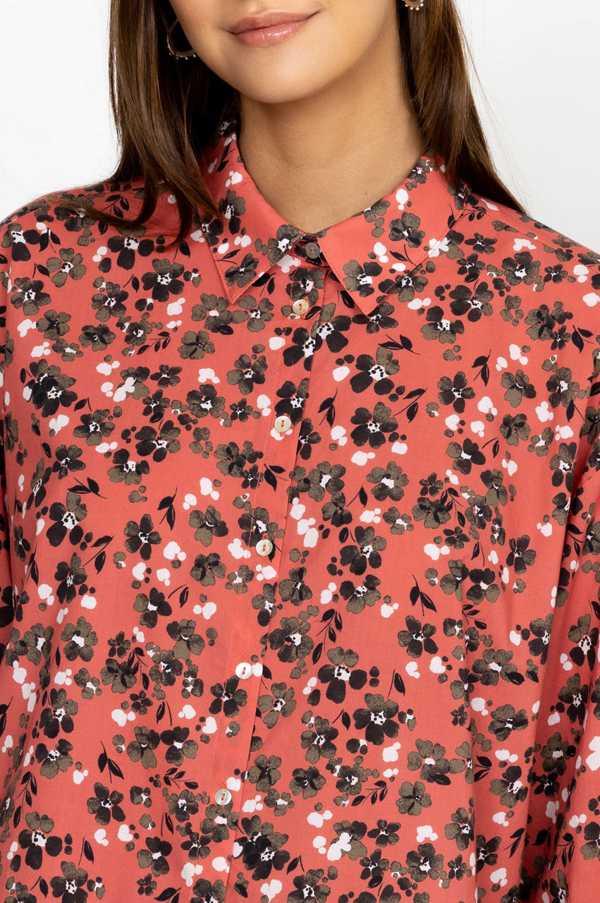 Designed from breathable cotton, the Print Button Front Blouse reinvents a versatile silhouette with a dainty floral pattern in an easy-to-style colorway. This blouse is cut in a regular fit and features a classic collar, a front button closure, and long sleeves with elastic cuffs for comfort. Team with jeans and flats for a relaxed approach to daytime dressing or opt for a skirt for a feminine finish.