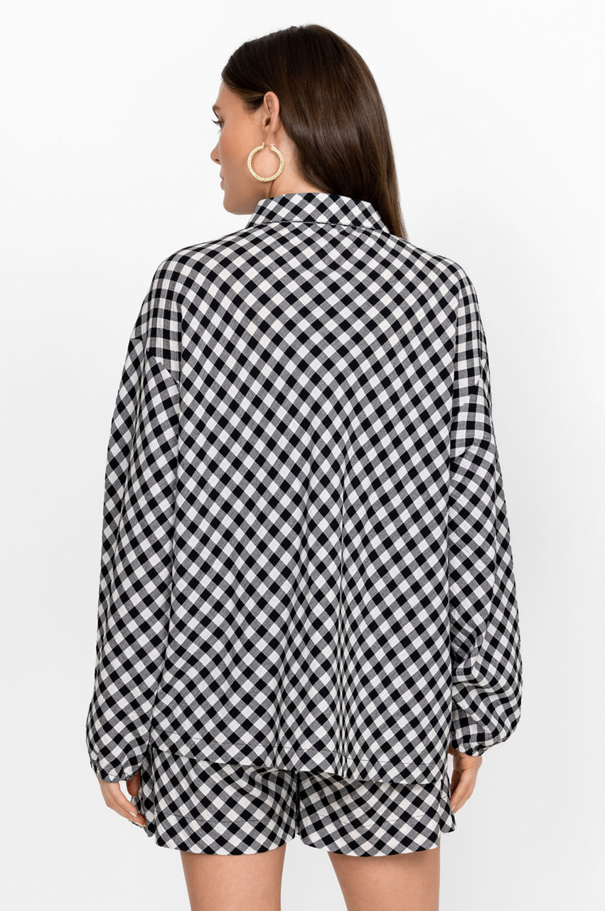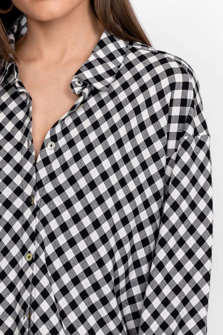 Give your off-duty ensembles a graphic edge with the Checks Hi Lo Button Shirt. Punctuated with a monochromatic color scheme, this shirt is designed from breathable cotton with a hint of stretch and boasts a collar, a front button closure, slight gathering at the back, and a prominent herringbone check pattern. Style with the matching shorts for a playful outfit that can be worn both at home or on vacation.