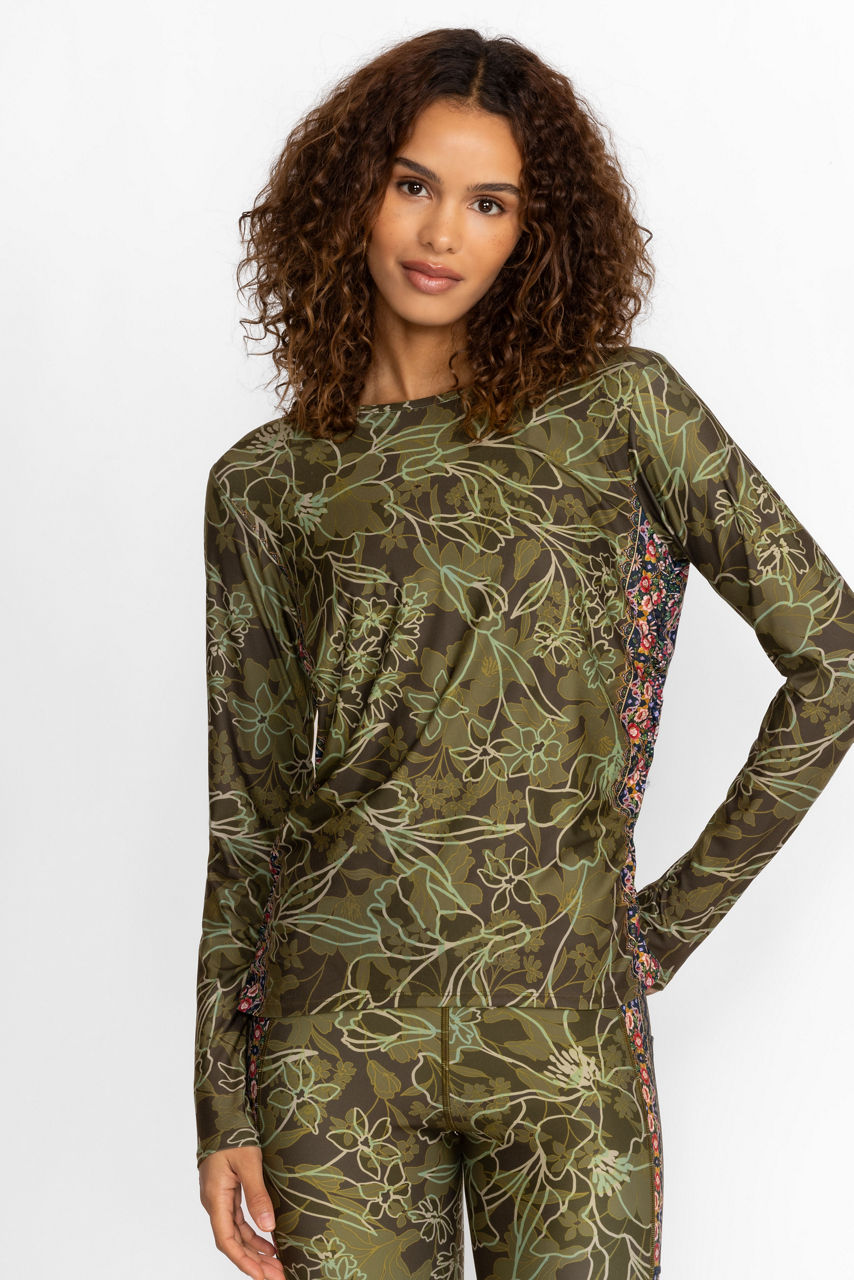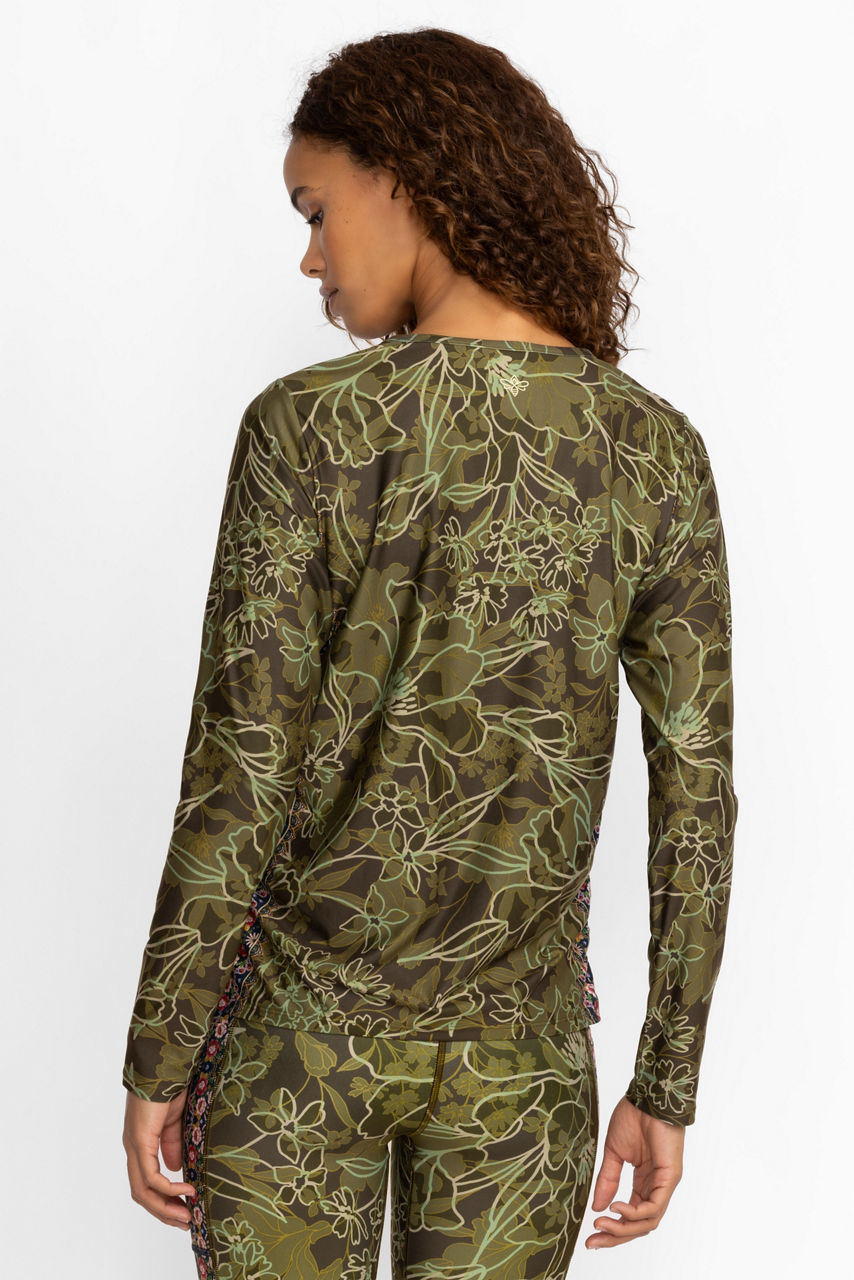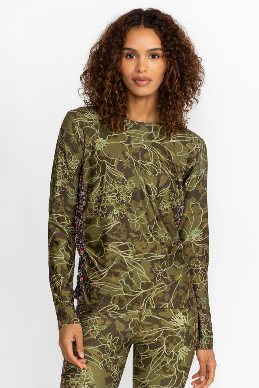 HIRZ CAMO RUCHED LONG SLEEVE TOP
