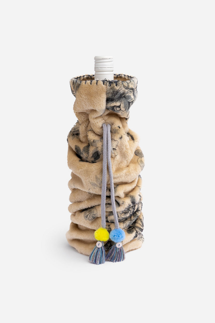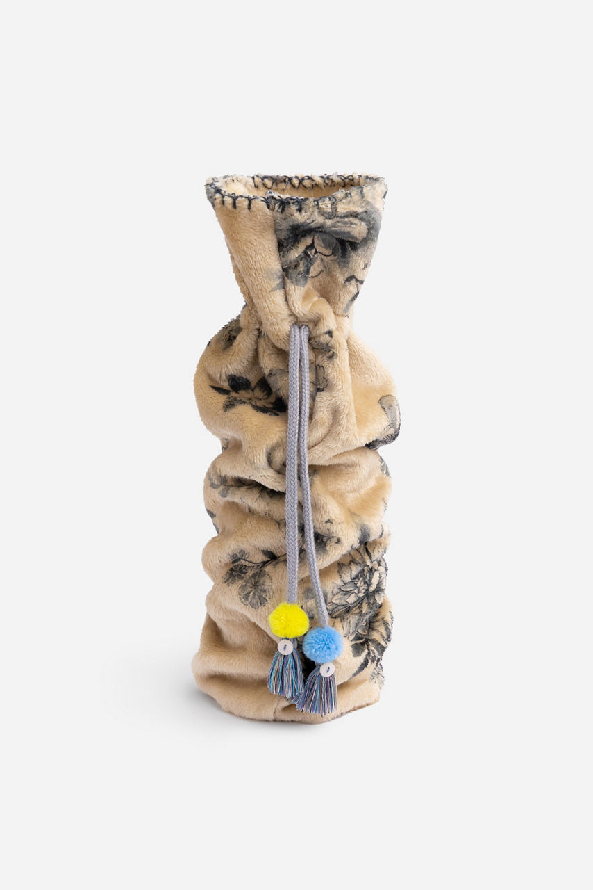 Embellished with an intricate designs, the our Holiday Wine Tote serves to elevate the spirit of the season. Crafted from a rich fabric, this elegant tote features a drawstring closure accented by colorful pom poms. Wrap a bottle inside to present as a hostess gift at seasonal events.