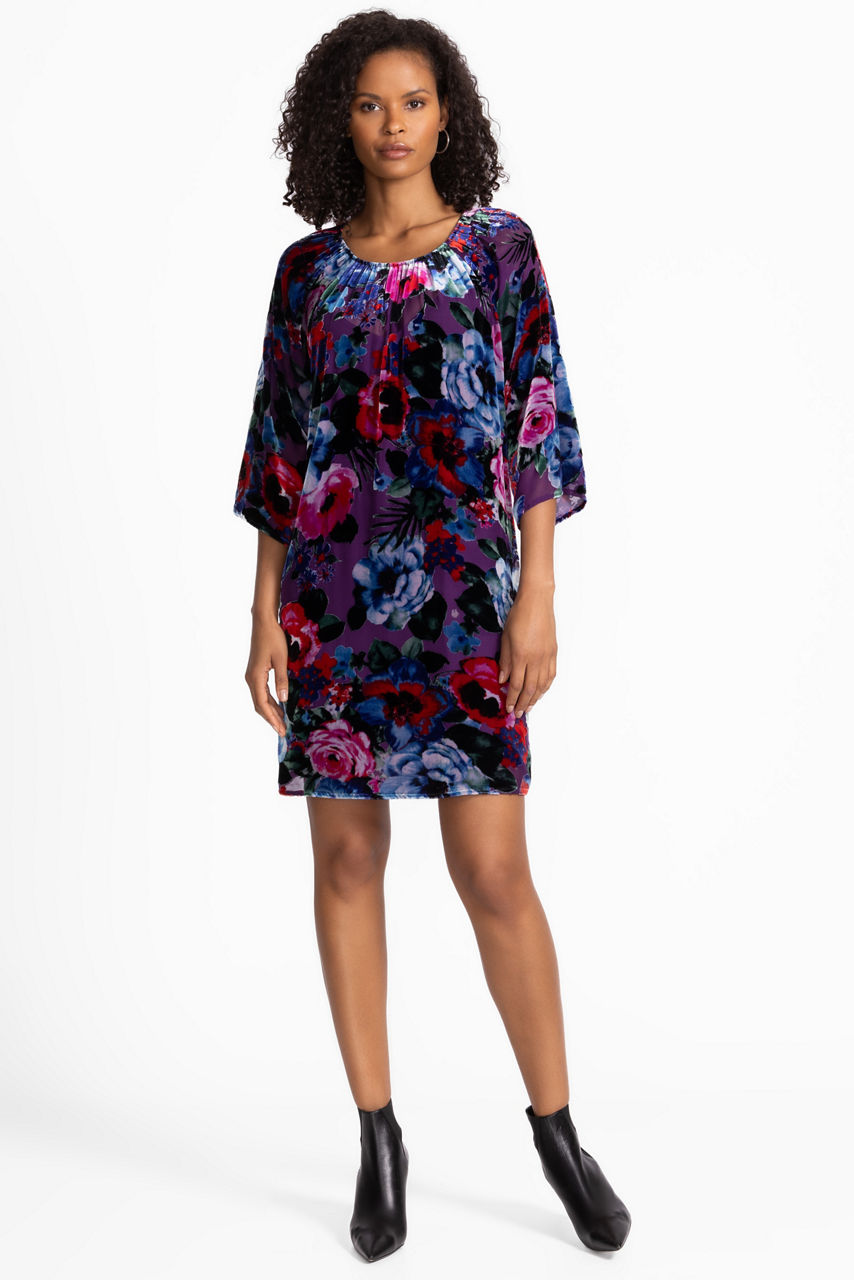 Crafted from a unique silk blend, the Hollis Mini Dress is embellished with a bold floral motif. Featuring a pleated detail at the neckline and a partial button closure at the back, this slip-lined dress is finished with an A-line silhouette. Pair with colorful flats and classic pearls for a timeless ensemble.