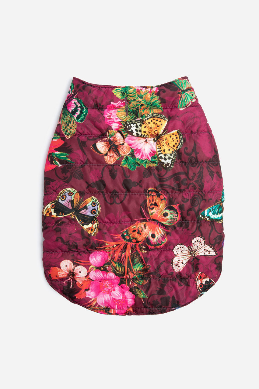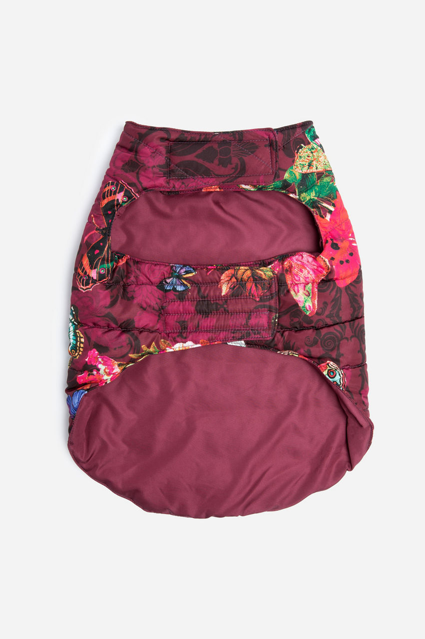 Keep your favorite furry friend stylish and warm in our Holly Puffer Dog Jacket. Featuring a beautiful butterfly patterned nylon outer and poly fill, this jacket is sure to keep your pup cozy and ready for all their winter walks.