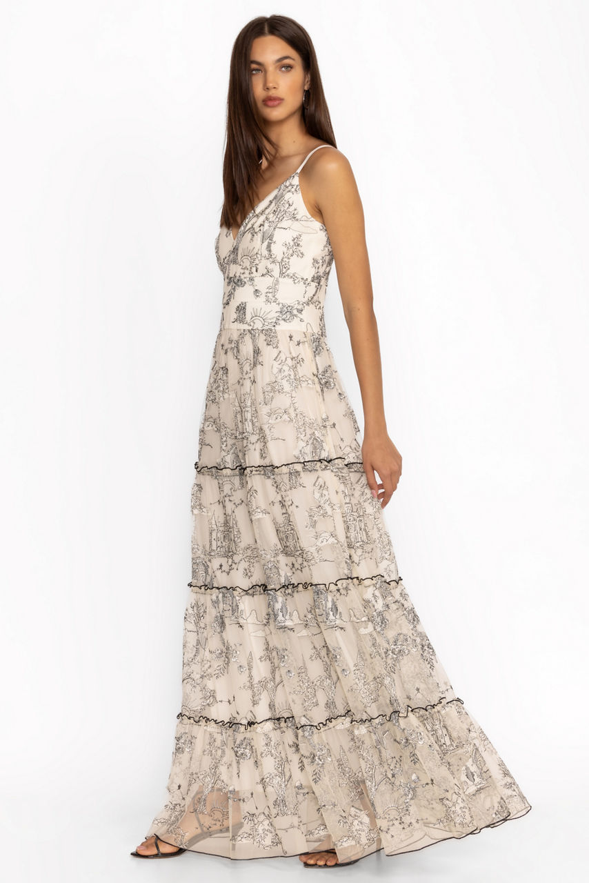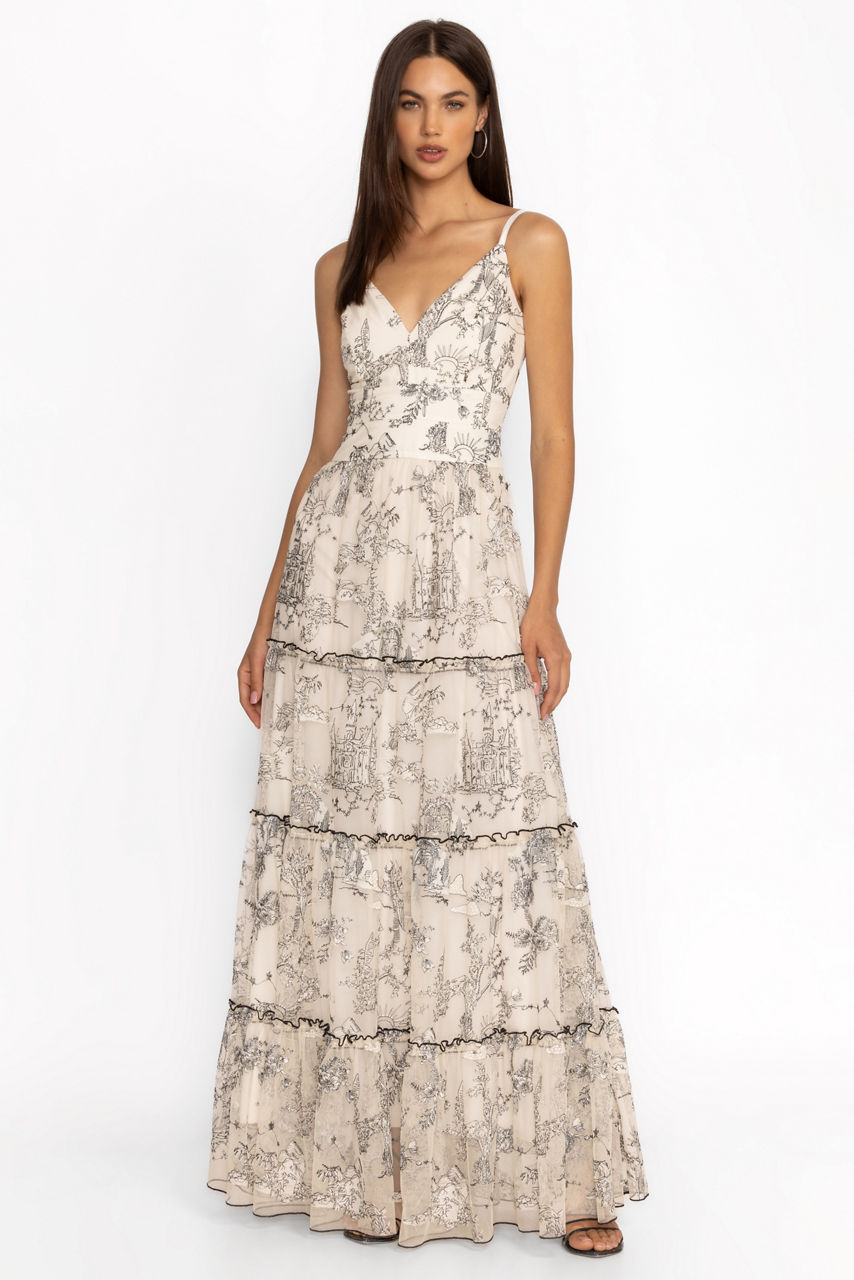 Beautifully crafted from a lightweight flowing fabric, the House on the Hill Dress is the perfect combination of femininity and elegance. Featuring a V-neckline and delicate spaghetti straps, this lined dress zips at the back and is finished with a full tiered maxi skirt. Pair with black strappy heels and dainty silver accessories for a polished evening ensemble.