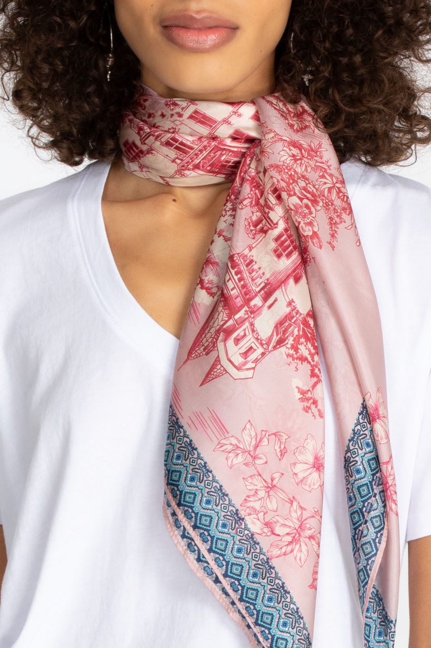 Our glorious House on the Hill Scarf will keep you wanting more with its specialty designs, hand-selected fabrics, and breathtaking colors. This scarf will bring any outfit alive, adding a playful color pop to every ensemble. Pair this scarf with your favorite tunic, skinny jeans, and high-heel boots to add the perfect finishing touch to your boho look.