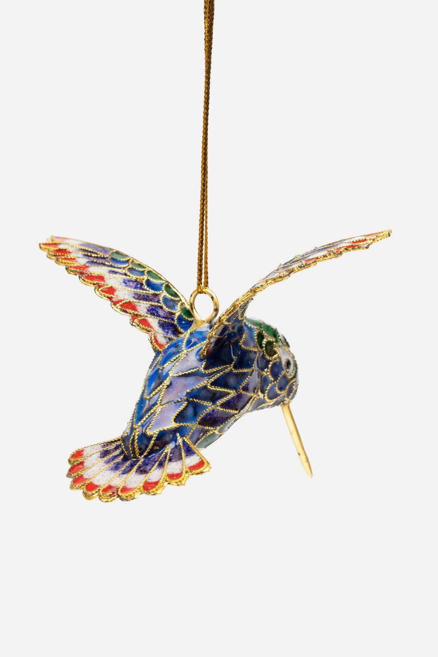 Decorative and delicate, the Hummingbird Cloisonne Ornament is a charming addition to any holiday tree. Created using the classic cloisonne technique, the copper metallic outline is filled with vibrant colored glass paste and then is gold plated for a stunning result. Add to holiday decor or hang year-round to admire its stunning beauty.