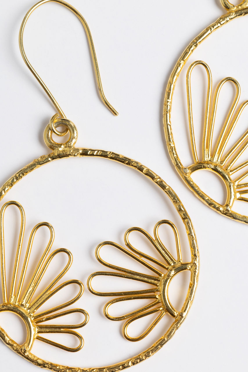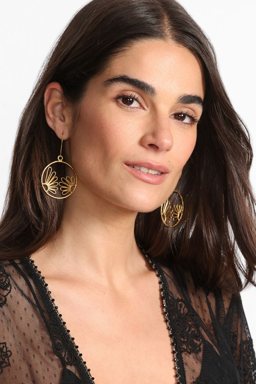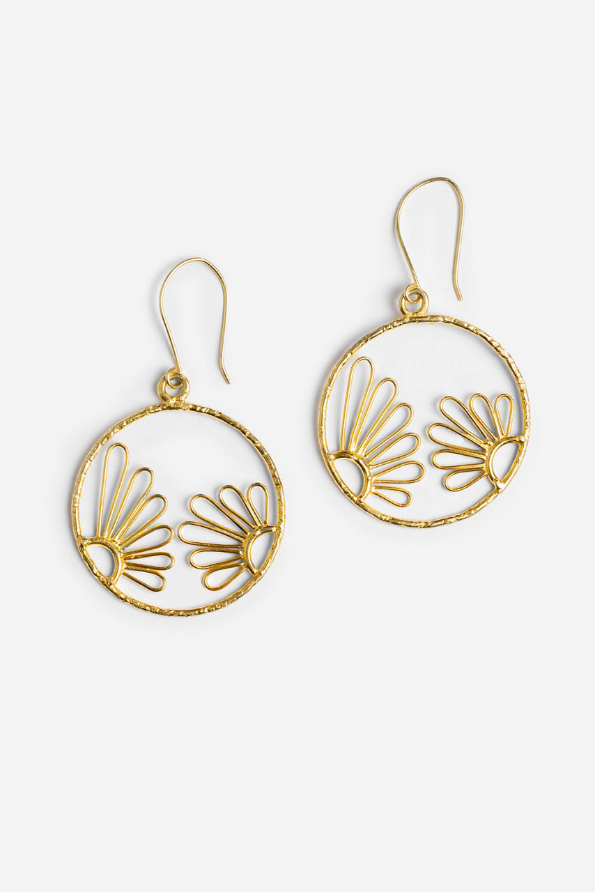 The Gold plated In Focus Flower Earrings feature a blend of natural stones and elegant metals, making them a versatile accessory for any wardrobe. Style these earrings with loose waves and a flowing dress for a relaxed boho look, or pair them with sleek hair and a black blouse for an evening-ready vibe.