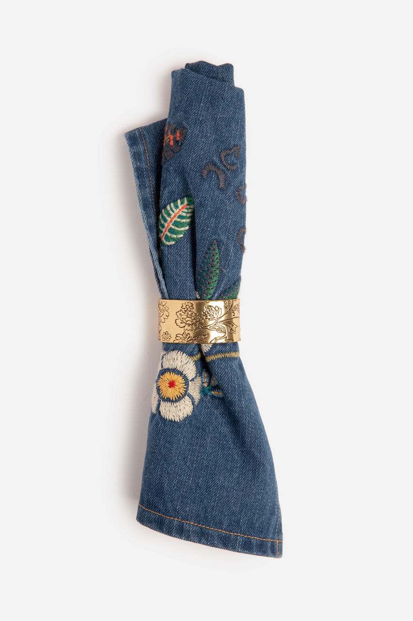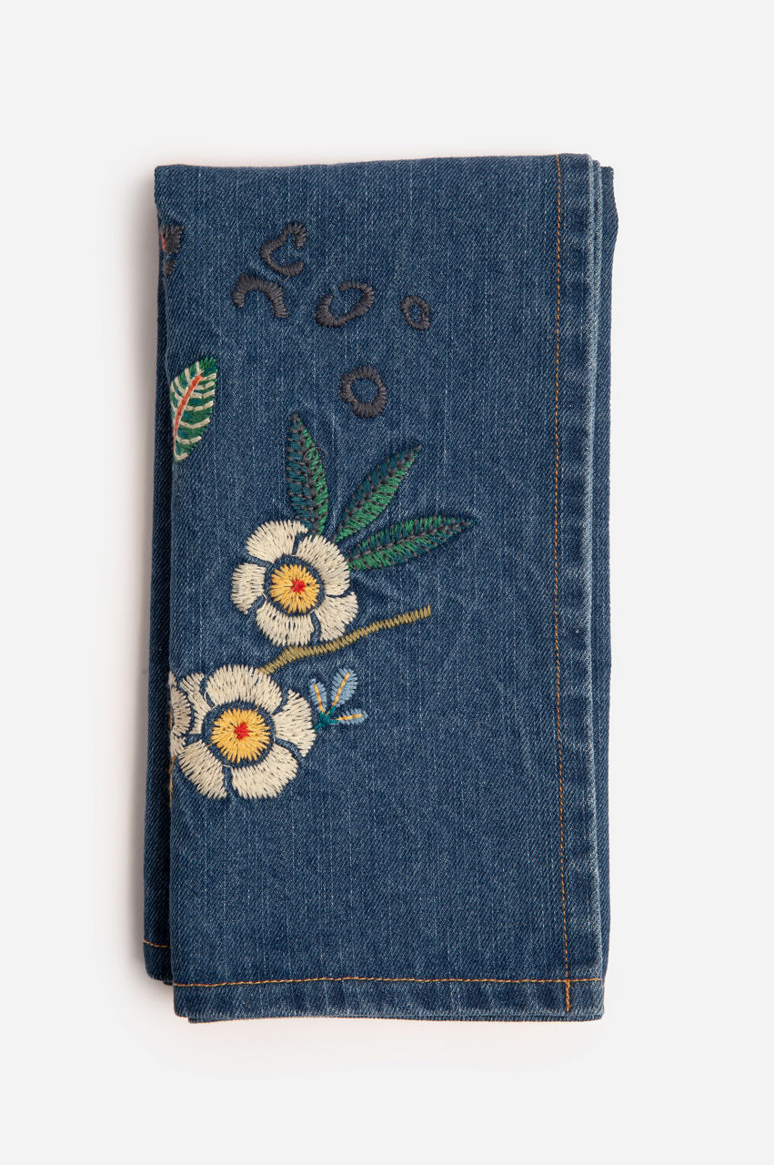 The perfect gift for your favorite hostess, our Indraa Embroidered Denim Napkins are sure to be a hit at your next festive gathering. These gorgeous pieces features our signature Johnny Was embroidery and was designed to add a chic pop of color to your tablescape. Pair with the Johnny Was placemat and napkin rings.
