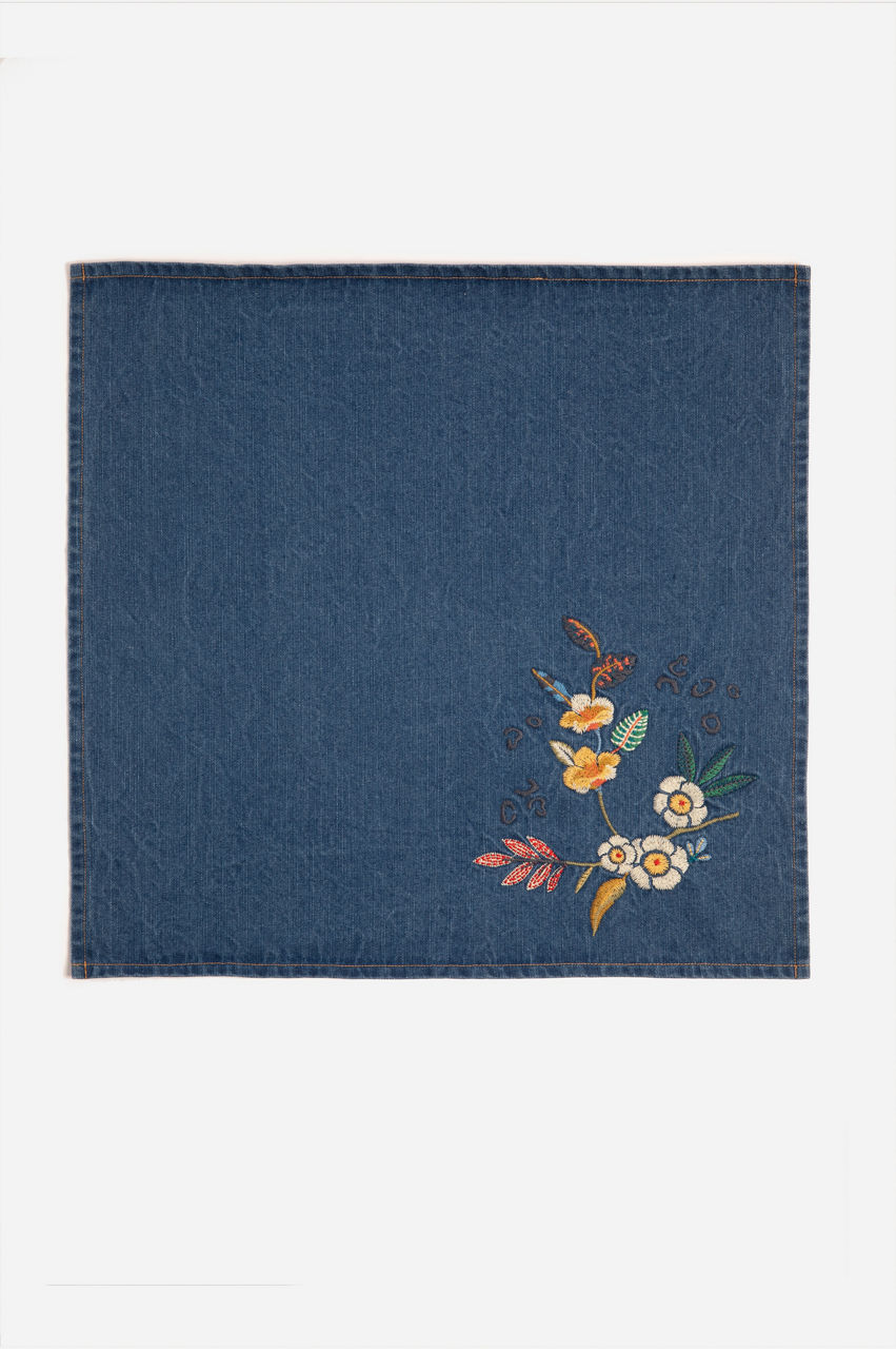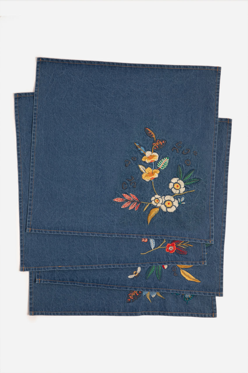 Indraa Embroidered Denim Napkins-Set Of Four