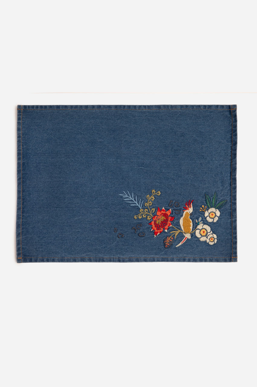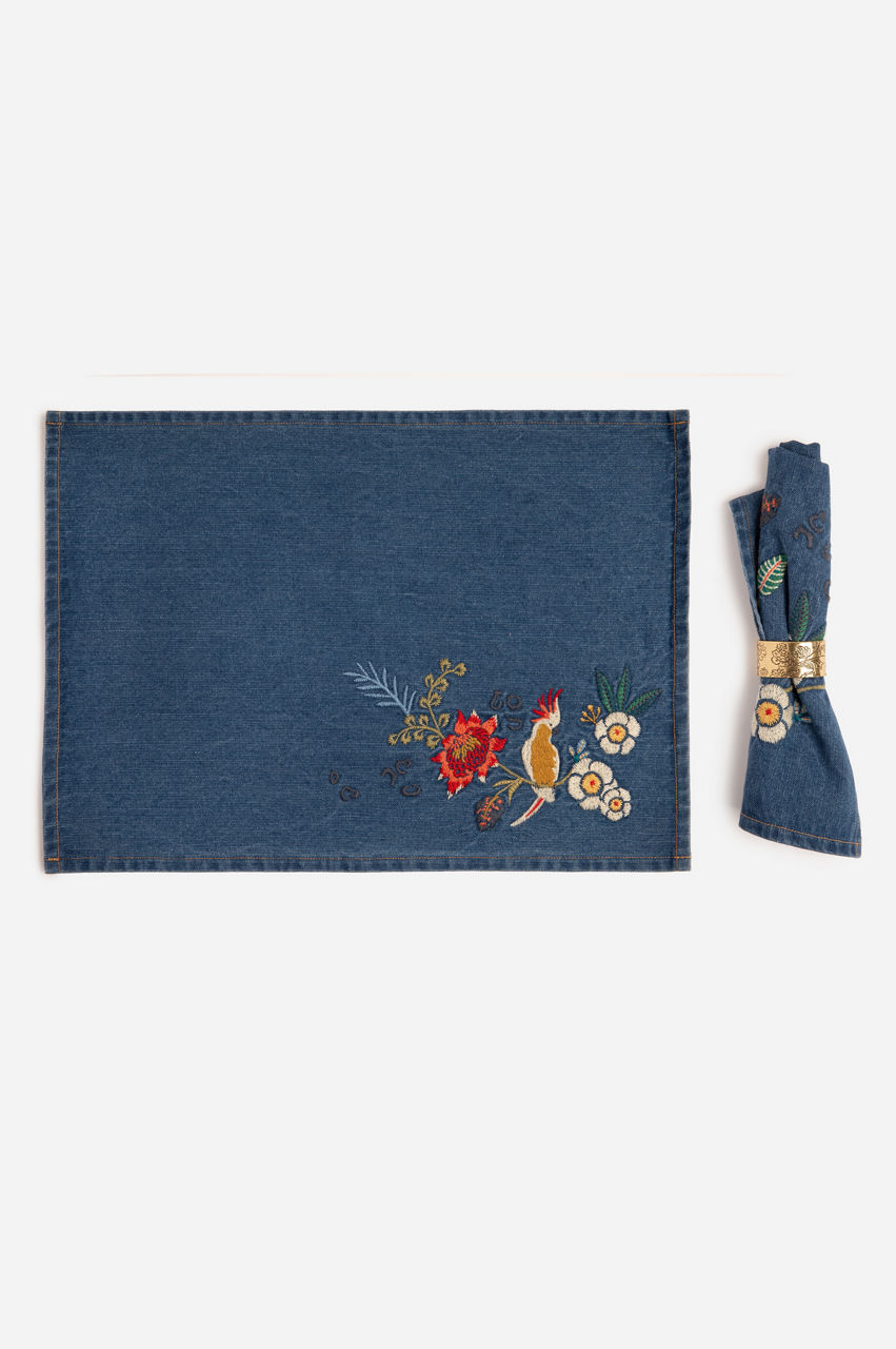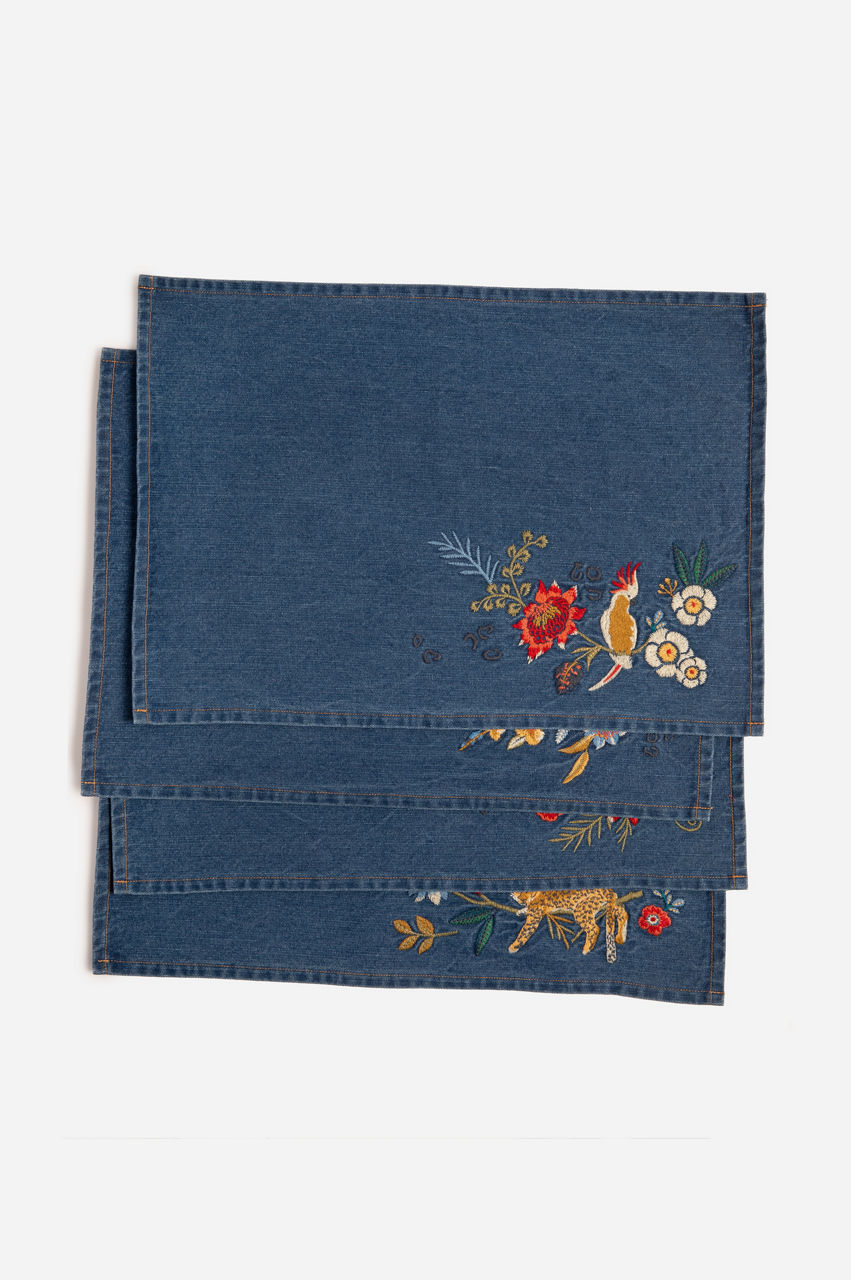 Indraa Embroidered Denim Placemats-Set Of Four