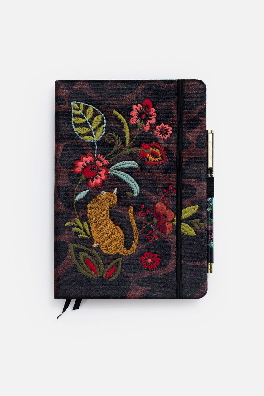 Delivering eye-catching flora and fauna, the Isabella Journal and Pen Set offers a vibrant way to express yourself. Fabric covered and bound, this delightful journal features colorful placement embroidery and a dazzling coordinated pen. Easily packable in a tote or carry-on, this ornate set would serve well as a travel journal or daily diary.