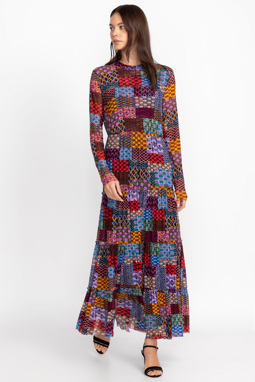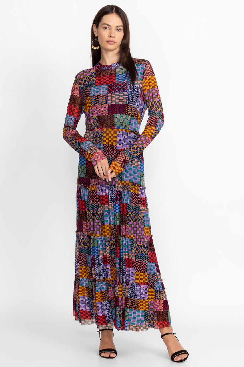 A true statement piece, the Isadora Waves Mesh Midi Dress offers a vivacious blend of color and pattern. Featuring a fitted bodice, modest neckline, and gentle A-line silhouette, this breathable mesh dress is an easy choice year-round. Pair with riding boots and colorful accessories for a polished work look.